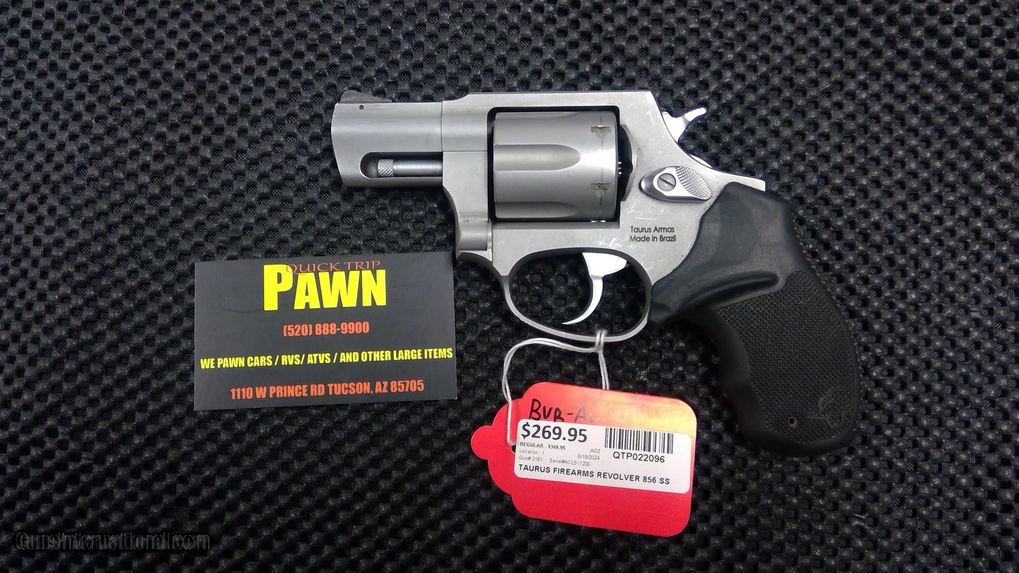 Description: Guns Listing ID: 1329110 The revolver is in overall good condition. It has been used and has wear in areas as expected from use. There is also some surface wear. It functions smoothly with no signs of issues. It comes as is with no extras SOLD Manufacturer: TAURUS Model: 856 Caliber Info: .38 S&W Condition: Used - Non-Certified Barrels: 2 BARREL Finish: SILVER |