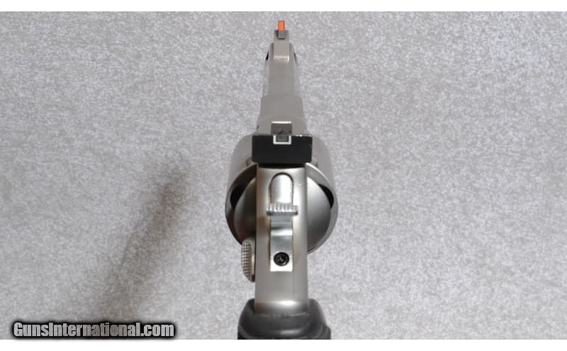 Description: This double-action (DA/SA) revolver has a 5-shot cylinder and a short, full-lug barrel. The sights are fixed. It is available in various frame materials and finishes and some models have compensating ports in the barrel. Other features include front and rear cylinder locks and rubber grips. .45 Auto SOLD Barrels: 4 Weight: 2 1/2 lbs. Item Location: Tulalip, WA |