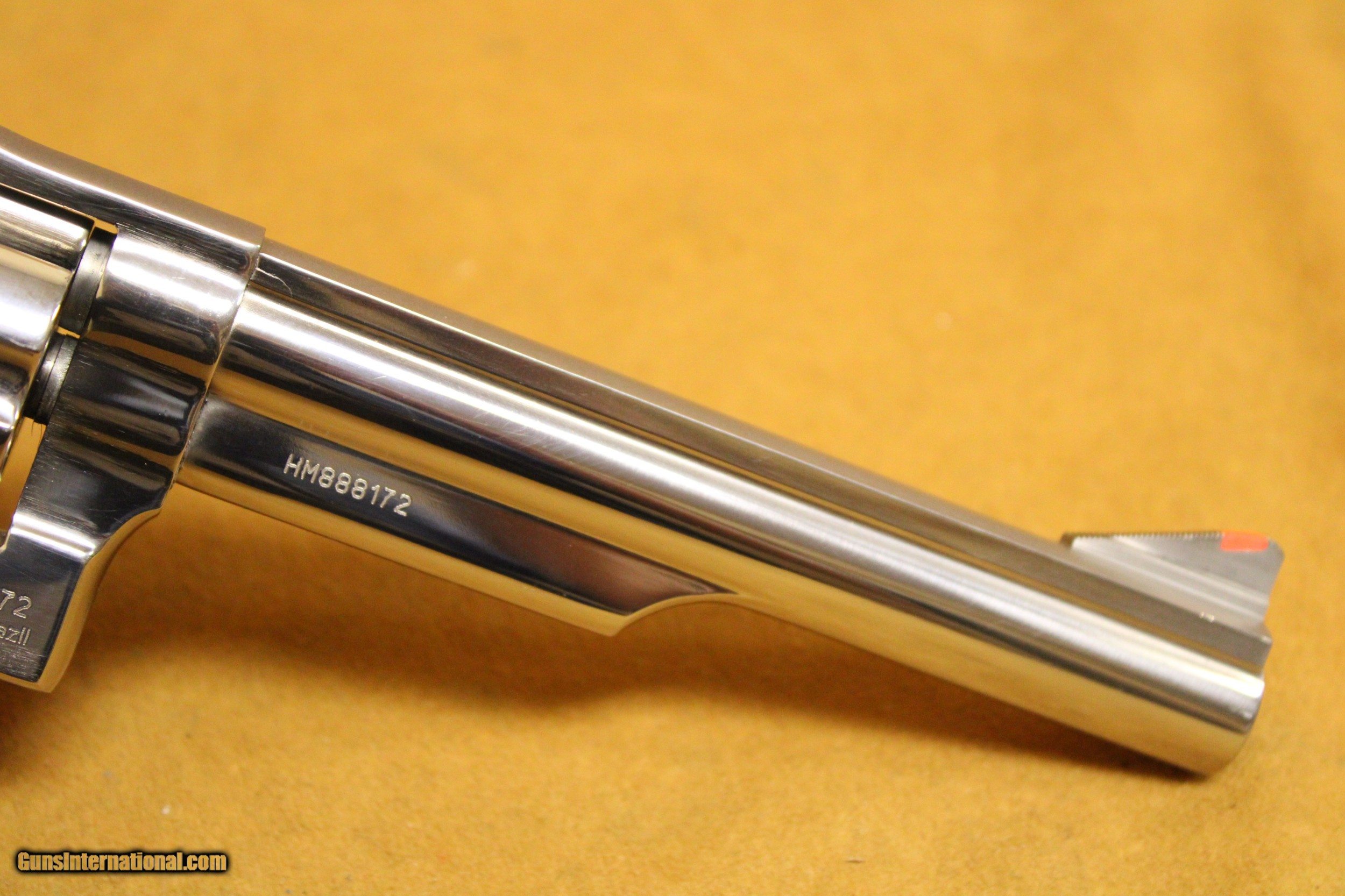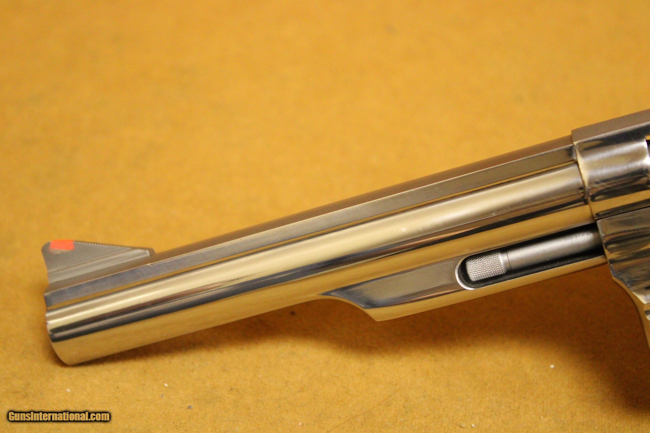 Description: This gorgeous revolver sports the discontinued 6" half-lug barrel chambered for the .357 Mag cartridge! Wearing a stunning High Polish Stainless finish, other signature features include the smooth trigger, checkered hammer, adjustable rear sight, fixed front red ramp sight, checkered cylinder release, and wood grips. No box. All items are also available for sale in our brick & mortar store and are subject to prior sale. Think long, think wrong. Payment On firearms, we typically only accept credit cards or money orders/cashier's checks.