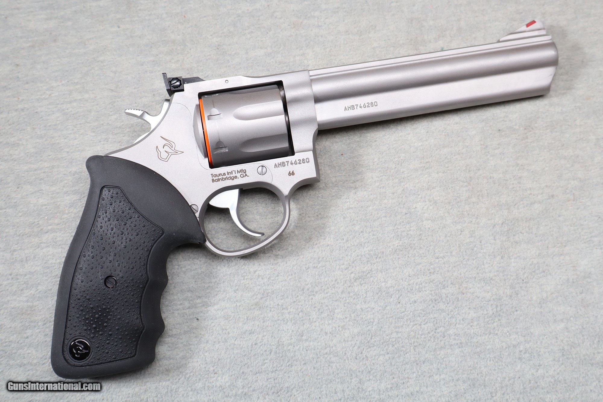 Description: TAURUS 66 The Taurus 66 is a versatile 7-shot revolver that features comfortable rubber grips. With fixed front sights, adjustable rear sights and a custom Single Action/Double Action trigger for improved accuracy and speed, the 66 is the ideal self-defense firearm. Matte Stainless finish. Comes with the original box and shows little use. .357 Magnum Metal Condition: very good Bore Condition: bright Barrels: 6" barrel Triggers: SA/DA Butt Pad: rubber grips Weight: 2 lbs 8 oz Sights: "ramped front sight with red insert, adjustable rear target sight Item Location: La Vista, NE Price: $459.99 Contact Seller |