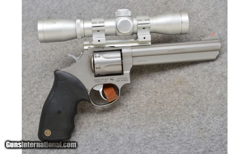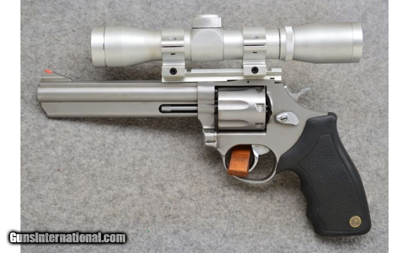 Description: Very good condition overall with normal handling wear. SOLD Caliber Info: .357 Smith & Wesson Magnum Chambers: 7 Round Cylinder Metal Condition: Very Good Bore Condition: Very Good Barrels: 6" Stainless Steel Triggers: Double Action / Single Action Stock: Taurus Synthetic Grips Weight: 3 lbs. 5 ozs. Sights: NcStar 2.5x30mm Scope Item Location: Hamburg, PA |