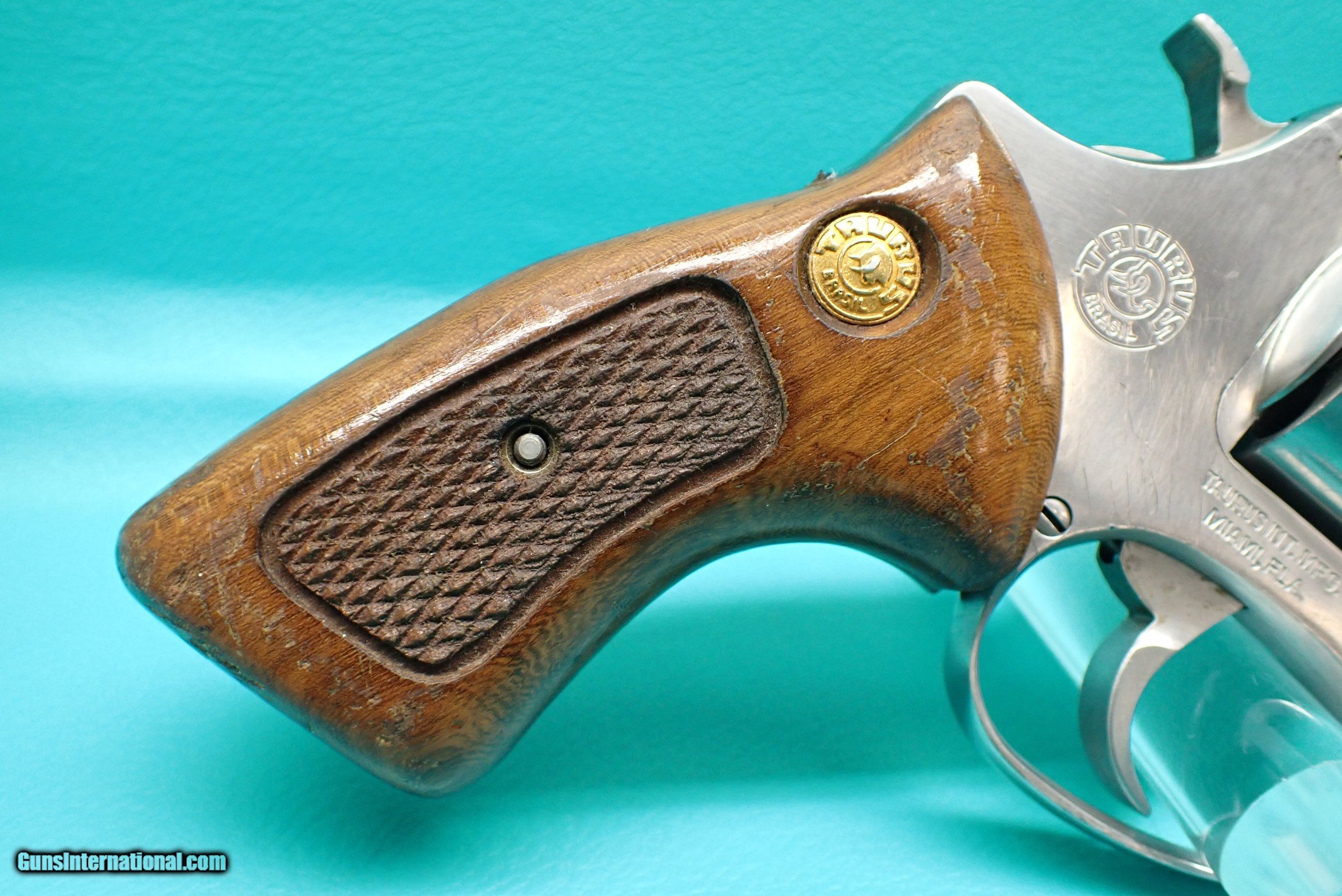 Description: ***SOLD*** Taurus Model 85 .38 Special revolver, manufactured in Brazil. This revolver features a solid stainless steel construction with checkered hardwood grips, both double and single action firing, and 5 round capacity. This pistol is in great working order with solid lockup and timing, as well as good bore and chamber surfaces. Some mild finish wear is present throughout, as shown. Please refer to the photos for overall condition. A great pistol for concealed carry! No handgun sales in MA. Shipping $25.00 / USPS. SOLD Handgun Caliber: .38 Special Manufacturer: Taurus Model: 85 Serial Number: FJ73258 |