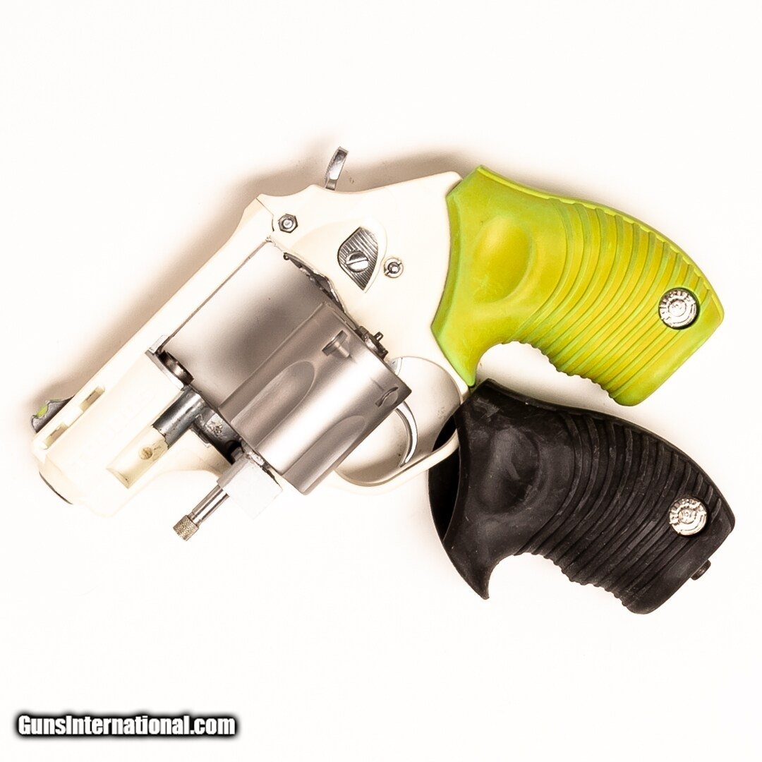 Description: Guns Listing ID: 632900 This Taurus 85 is a five-shot revolver chambered in 38 Special and rated for use with +P ammunition. The short barrel and ultra-light weight of this revolver make it an ideal choice for concealed carry and as a backup weapon for law enforcement. This Taurus 85 includes the original box, lock-out keys, and a second set of black rubber grips. SOLD Manufacturer: TAURUS Model: MODEL 85 Caliber Info: .38 SPL Condition: Used - Certified Barrels: 2.00 barrel Finish: STAINLESS |