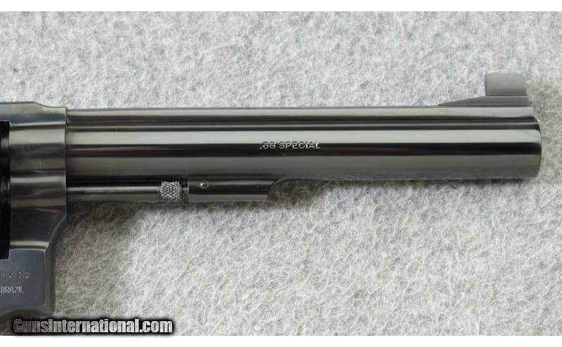 Description: In its design, fabrication, and fit, the Taurus® 86 Target Revolver has been built to the Taurus Zero Tolerance standard! What does that mean? The experts at Taurus built the 86 with no tolerance for parts that do not perform as if your life depends on them. This solid shooter features a steel frame and cylinder with a high polished blue finish. This medium frame double action revolver from Taurus is a great choice for target shooting and home protection. A transfer bar adds extra safety to your shooting experience. The adjustable rear sight and Patridge blade front add repeatable downrange accuracy. .38 Special SOLD Metal Condition: Excellent with a turn line on the cylinder Wood Condition: Excellent Bore Condition: Excellent Barrels: 6 inch barrel Triggers: Wide target trigger Weight: 40 Oz. Sights: Adjustable rear sight with Patridge blade front Item Location: Lehi, UT |