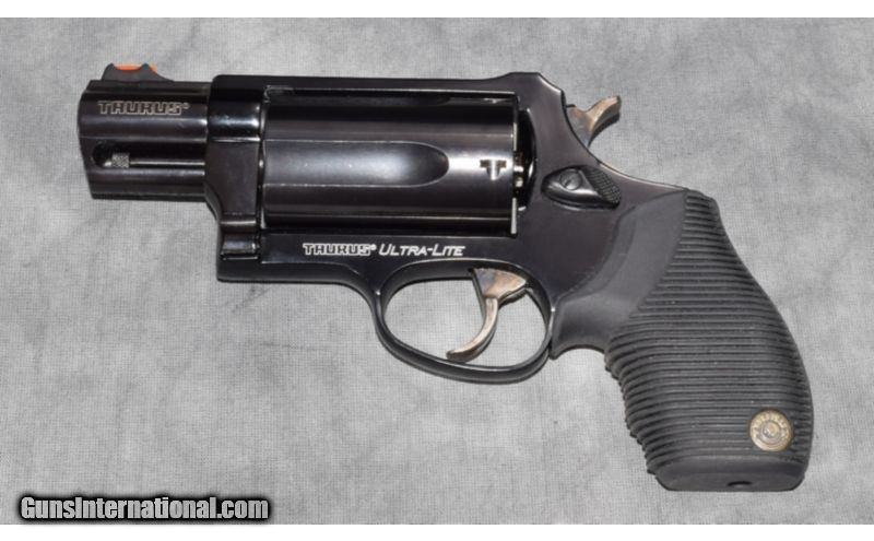 Description: The Taurus Judge Ultra-lite is a large-frame revolver chambered for .45LC and 2.5” .410 shells. It is an ideal revolver for close range shooting or self-defense situations. The Judge’s features include Taurus’s ribbed rubber grips, fixed sights with a fiber optic front sight that’s brightly colored and easy to see. SOLD Caliber Info: .45 long colt, and 410 gauge shotshells. Chambers: 5 round cylinder for 2.5 inch shells. Metal Condition: Very Good, minimal handling wear. Wood Condition: Grips are in excellent shape, nice texture, no tears. Bore Condition: Very good, clean and bright with small rings on cylinder face. Barrels: 2 inch blued. Triggers: Single action / double action. Stock: Lightweight alloy frame with, factory ribbed rubber grips. Stock Dimensions: 7 inch overall. Sights: 22.4 Oz. Item Location: Chesterfield, MI |