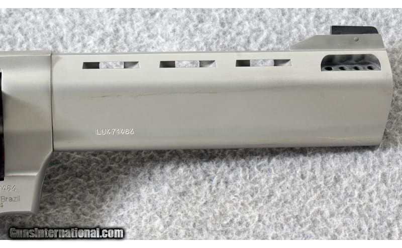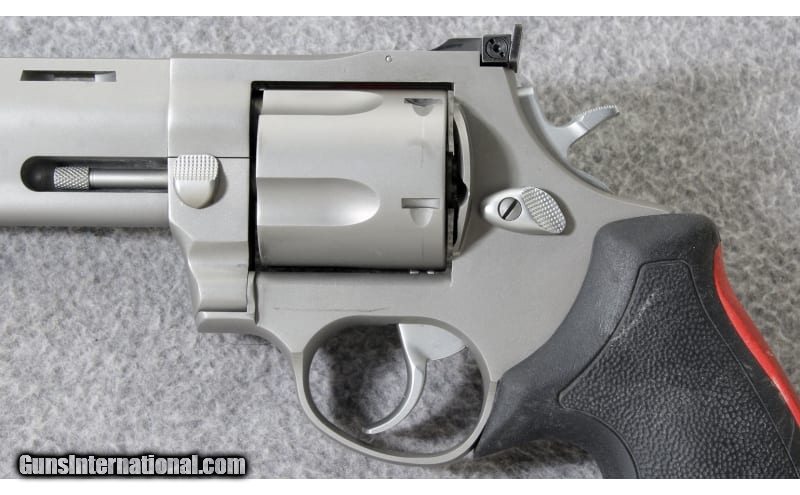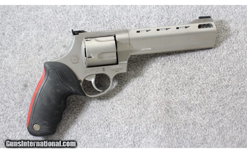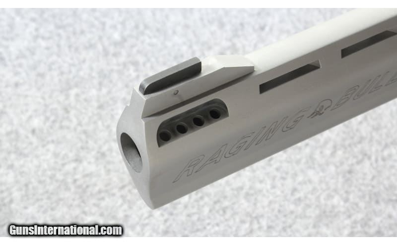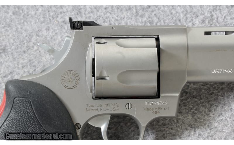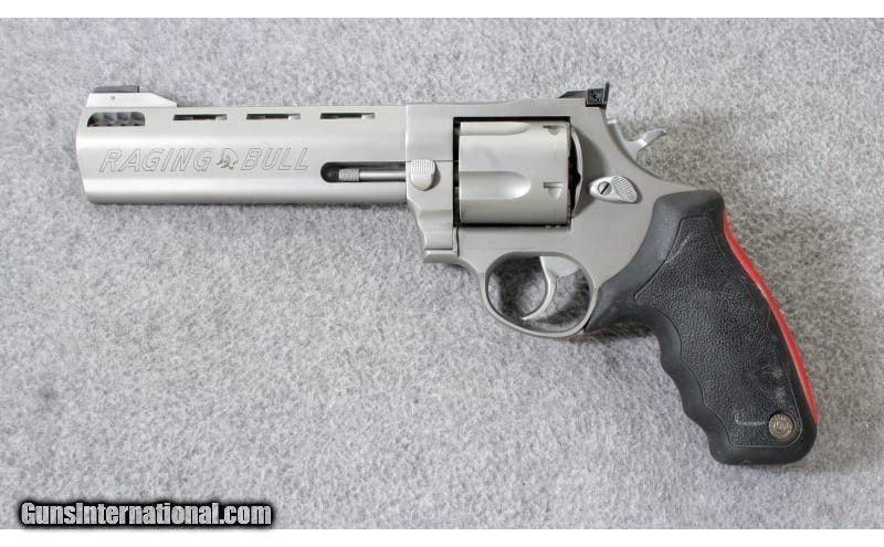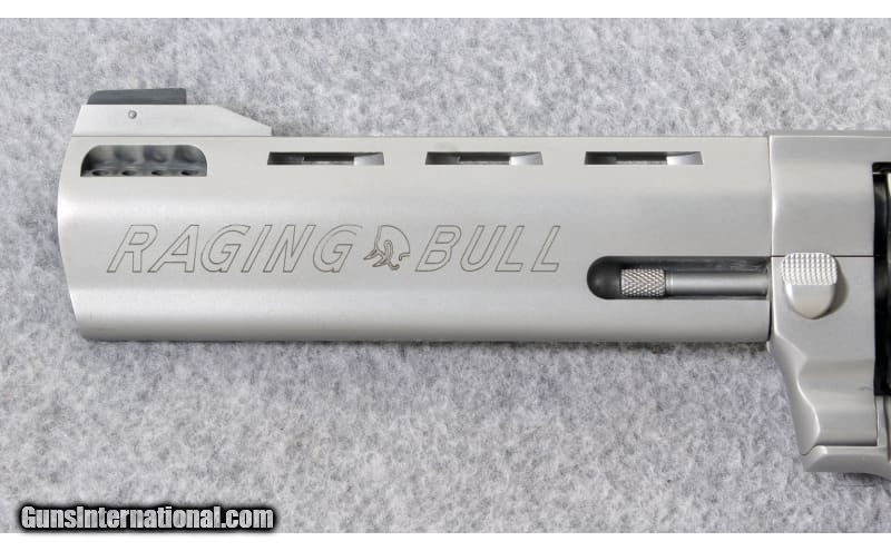 Description: The Taurus® Raging Bull® is a robust, large-frame double-action revolver meant for hunting big game or personal protection in wild regions inhabited by bears and other large predators. To tame recoil from magnum cartridges, the Raging Bull comes with a factory ported barrel and a non-slip rubber grip with a cushioned insert. A dual lockup cylinder and a massive mainframe withstands years of pounding by heavy loads. All stainless-steel construction necessitates minimal maintenance in wet environments. Fully adjustable sights allow you to dial in custom loads with precision accuracy. A transfer bar mechanism prevents the hammer from striking the firing pin unless the trigger is pulled fully to the rear. .454 Casull SOLD Metal Condition: Excellent with a turn line on the cylinder and some scratches Bore Condition: Excellent Barrels: 6.5 inch ported full lug barrel Triggers: Double action Weight: 56 oz. Sights: Adjustable rear sight with Patridge blade front Item Location: Lehi, UT |