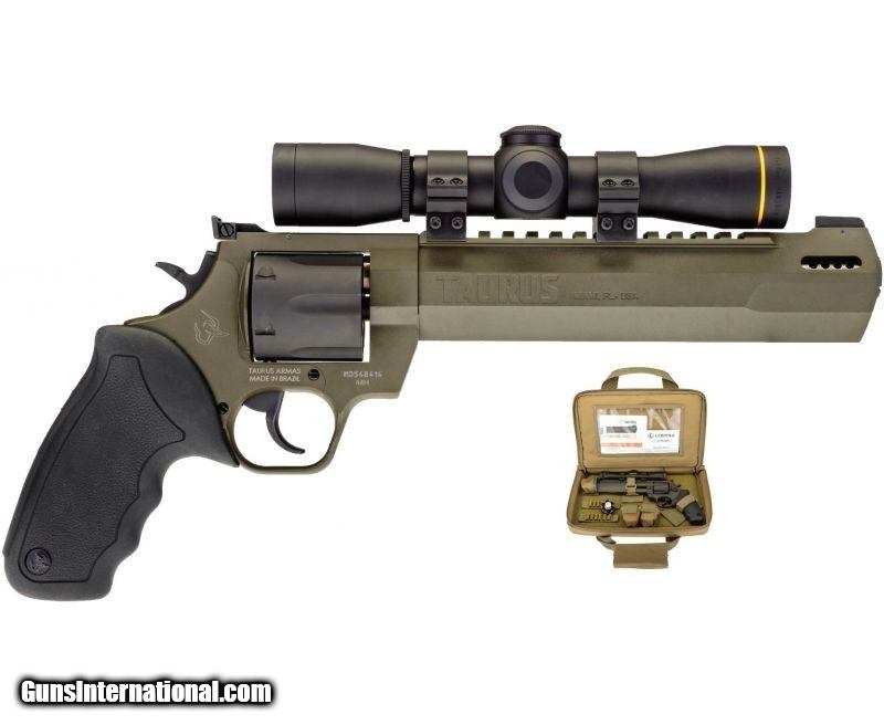 Description: BRAND NEW IN THE BOX AND READY TO SHIP! BUY IT NOW!! Manufacturer: Taurus International MFG, Inc. Model: Raging Hunter™ Hunting Package Sku: 2-440081RH-DLX Optics: Leupold FX-II 4x28mm Handgun Scope Caliber: .44 Magnum Barrel Length: 8.38" Ported Capacity: 6 Round Cylinder Cylinder Finish: Matte Black Oxide Frame Finish: Military Spec Green Cerakote Grips: Black Rubber with Cushioned Insert Weight: 55 oz Overall Length: 15" Picatinny Rail Sights: Front - Fixed, Rear - Adjustable Action: Double / Single Action Winner of the 2019 American Hunter Hunting Handgun of the Year Golden Bullseye Award, the Taurus Raging Hunter is a next-generation, big-bore revolver that’s first in innovation-and built to last. A fun and effective alternative for short-to medium-range hunting scenarios, this 44 Magnum, six-shot revolver is now available in Military Spec Green Cerakote. Its revolutionary angular barrel design cuts down on overall weight, while its factory-tuned porting and gas expansion chamber reduces muzzle lift for quicker target acquisition. Cushioned insert grips ensure a comfortable, controllable shooting experience. This Kit comes with a Taurus Deluxe Carry Case FDE, Two HKS 29-M Speed Loaders and, a Leupold FX-II Handgun 4x28mm Scope, with PRW2 1” Low mounting rings; these scopes can take a beating, they’re tested to the same harsh standards as all other Leupold scopes, a perfect match for this award-winning hunting handgun. KNOW YOUR LOCAL AND STATE LAWS!! ORDERS WILL ONLY BE ACCEPTED FROM US RESIDENTS OF THE LOWER 48 STATES, ALASKA AND HAWAII. OUR FFL CLASS DOES NOT ALLOW FOR THE EXPORT OF FIREARMS, THEREFORE WE CANNOT SHIP OUT OF THE US. IF YOU ARE INTERESTED IN PURCHASING THIS ITEM, PLEASE COMPLETE YOUR ORDER BY REFERRING TO THE "SELLER'S INFORMATION" ABOVE. SOLD Handgun Caliber: .44 Remington Magnum |