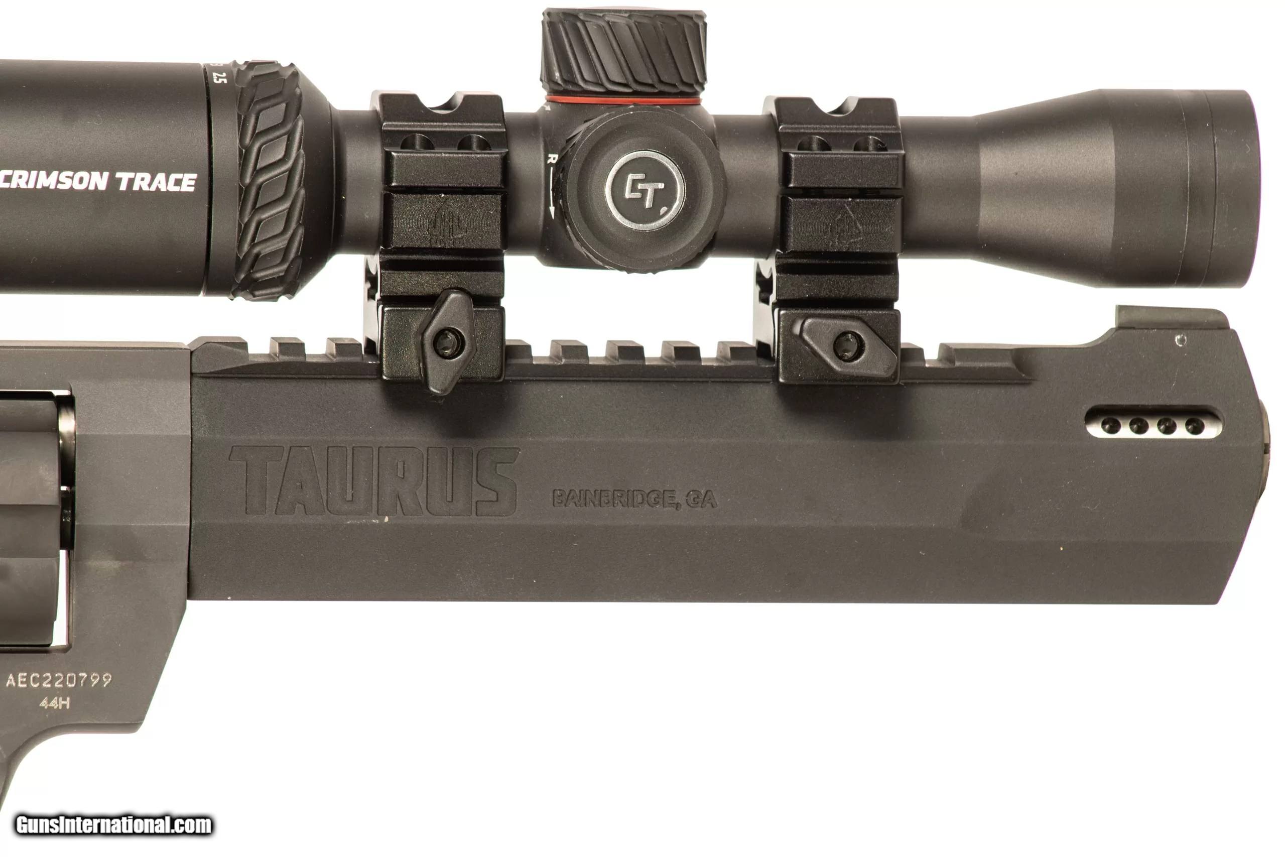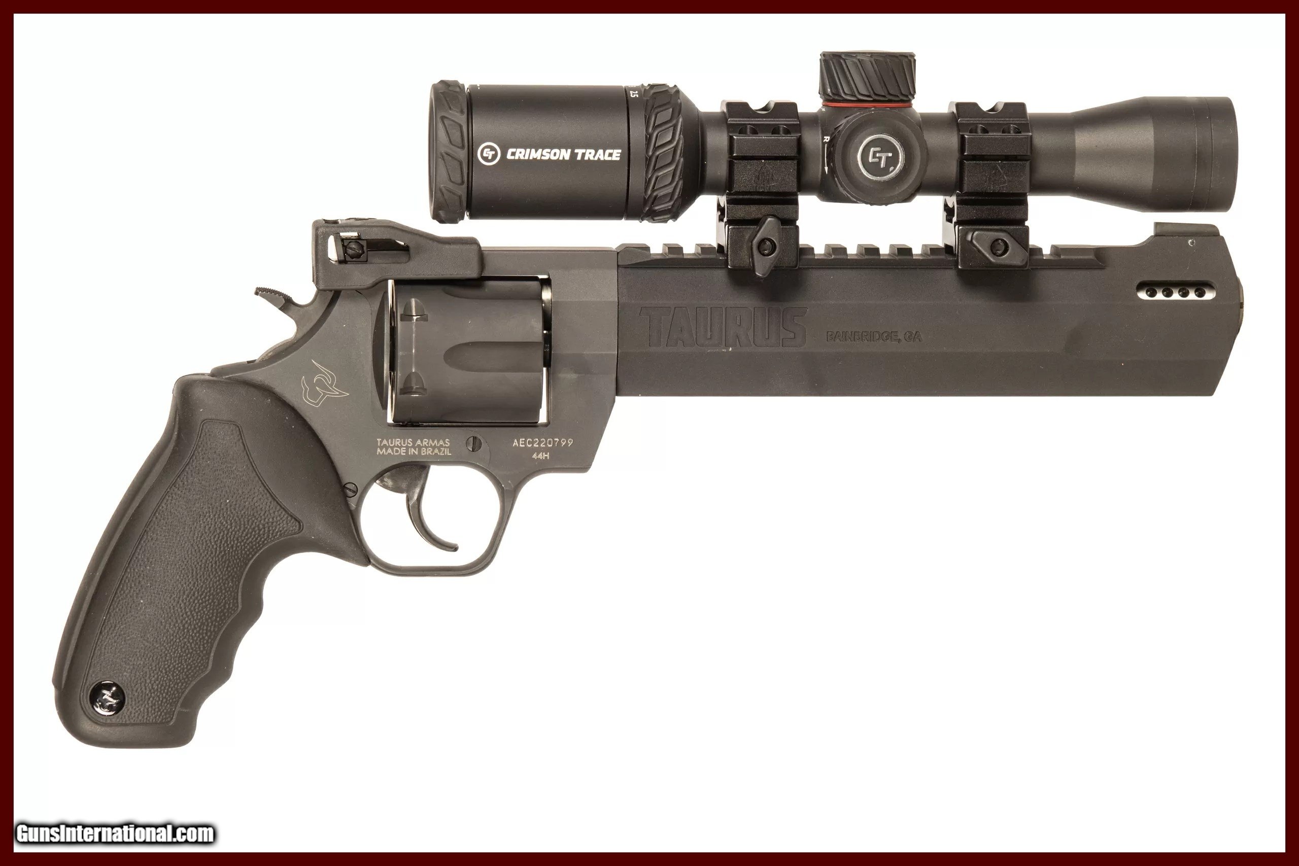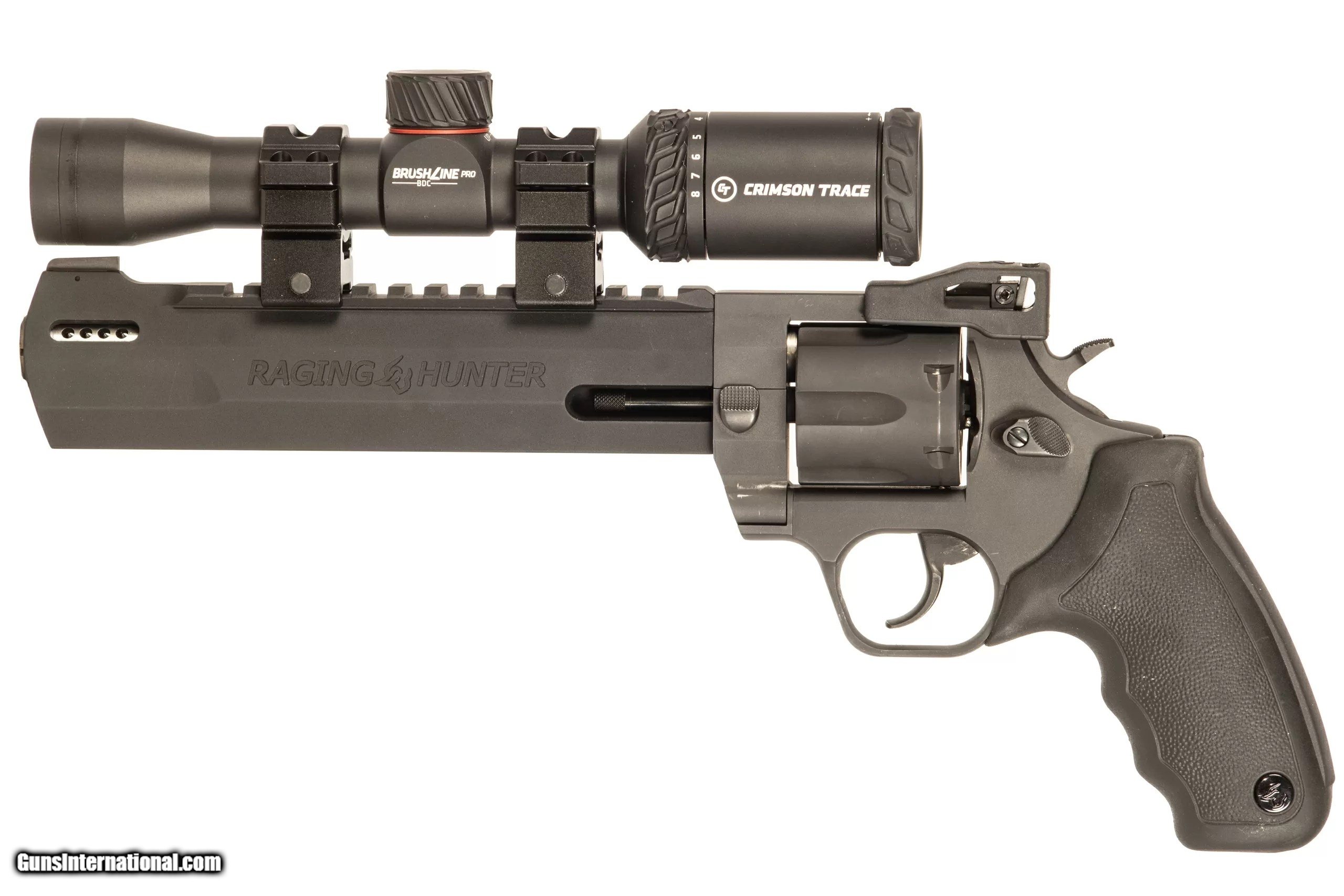 Description: Taurus Raging Hunter chambered in 44 Magnum. The ported barrel is 8.5 inches with a shiny bright bore and sharp rifling. This revolver is equipped with a Crimson Trace Bushline Pro 2.5-8x28 optic. The NRA grading condition for this USED firearm is Excellent. Dury's Lifetime Warranty: All firearms purchased from Dury’s Gun Shop, NEW or USED, are covered by a lifetime warranty. We will repair or replace, at our discretion, any firearm purchased from Dury’s Gun Shop, Inc. for as long as it is owned by the purchaser. This warranty is not transferable. WE BUY GUNS! NO COLLECTION TOO BIG OR SMALL FOR OUR GUNS INTERNATIONAL CUSTOMERS ALL OF OUR FIREARMS CAN BE PURCHASED DIRECTLY FROM OUR DURY'S GUNS SITE ! SOLD Manufacturer: Taurus Model: Raging Hunter Caliber Info: 44 MAGNUM Barrels: 8inches |