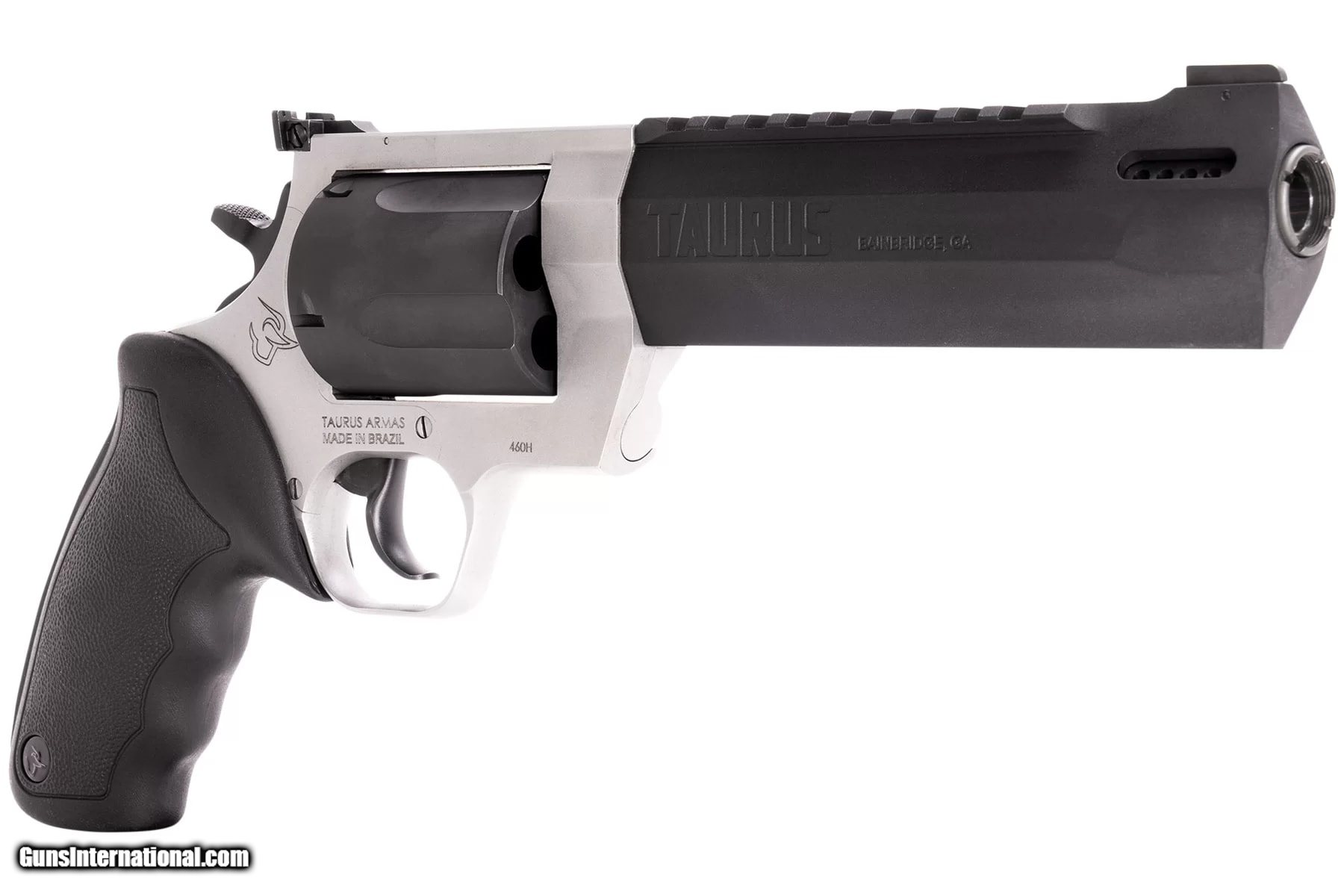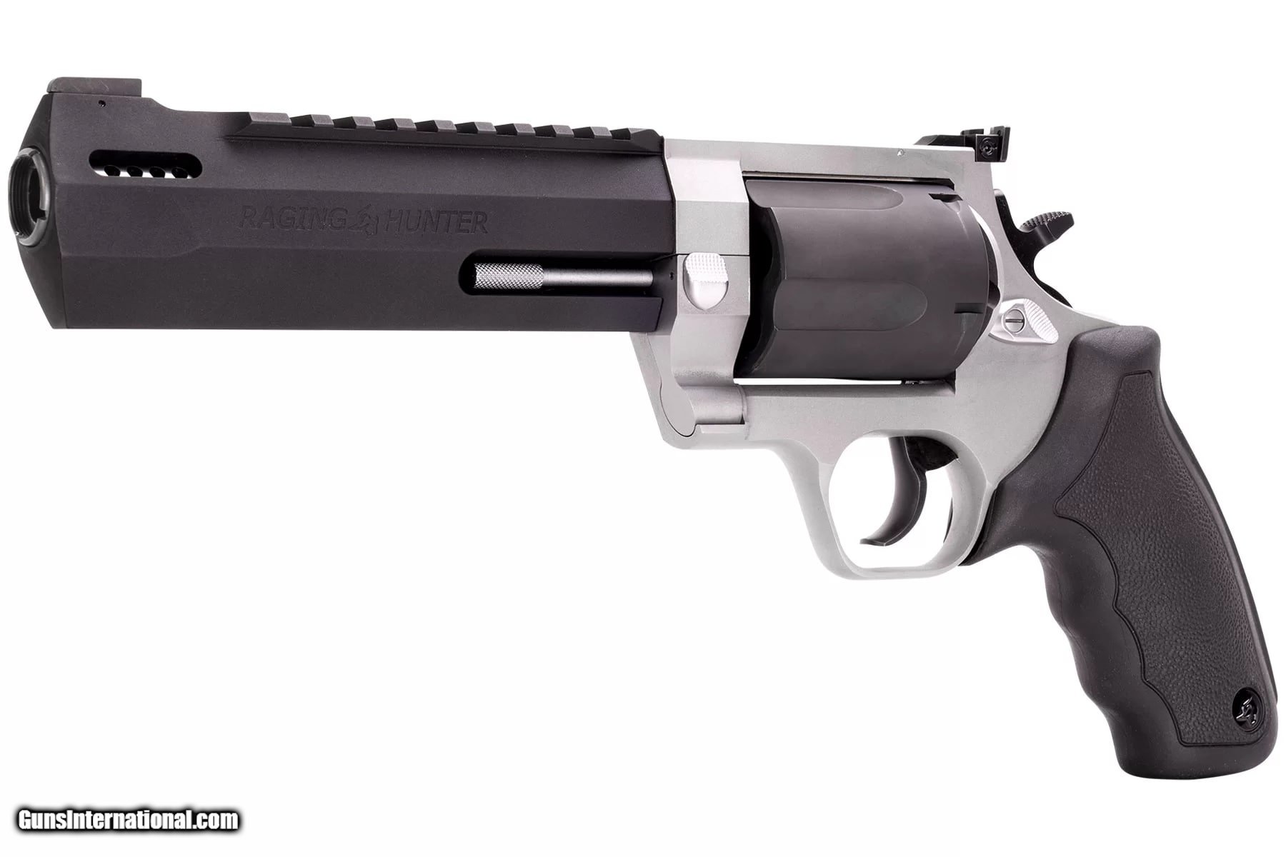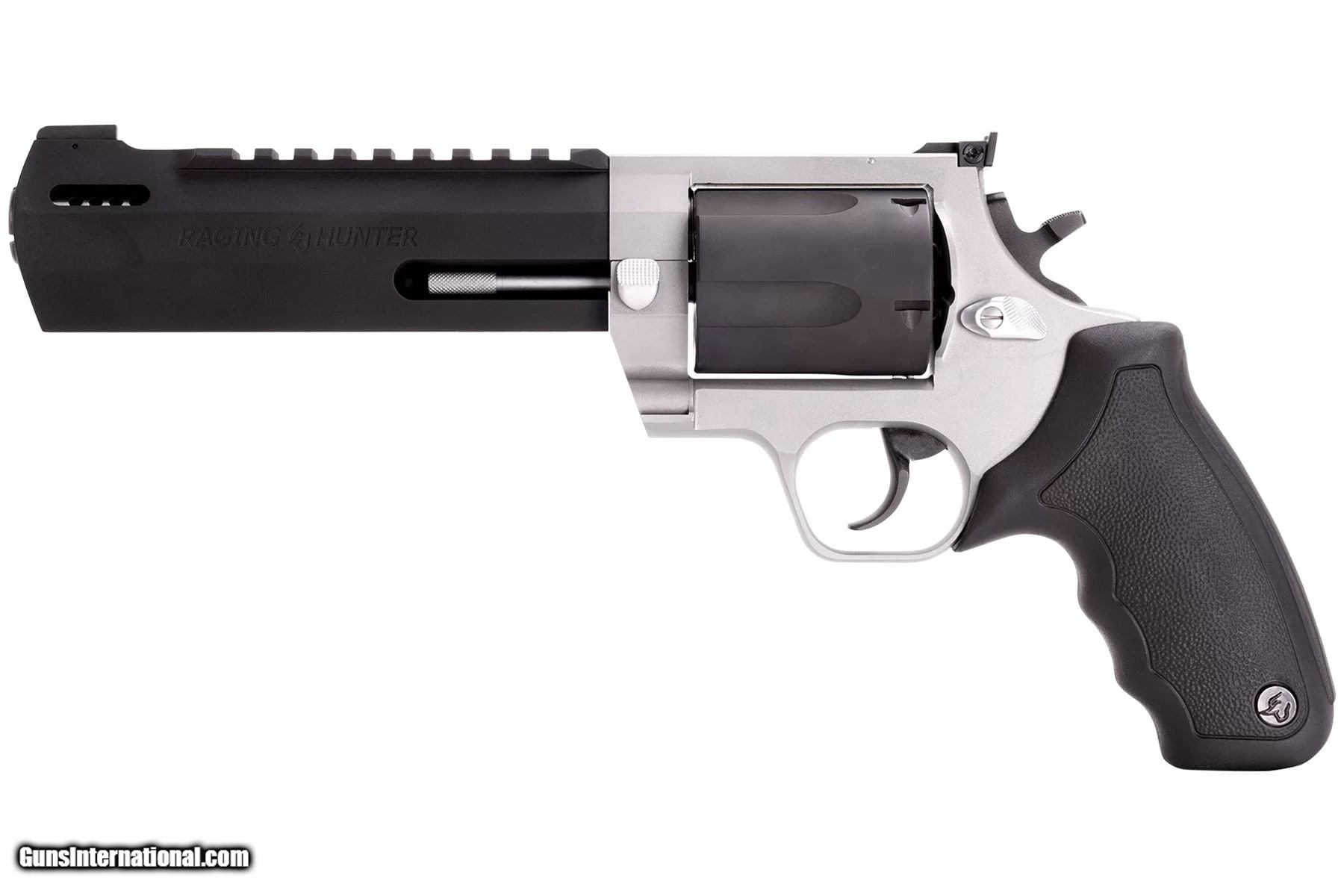 Description: Guns Listing ID: 234594 Winner of the 2019 American Hunter Handgun of the Year Golden Bullseye Award, the Taurus Raging Hunter is a next-generation, big-bore revolver that‚‚s first in innovation-and built to last. A fun and effective alternative for short- to medium-range hunting scenarios, this five-shot revolver is now available chambered in 460 S&W Magnum and is available in Matte Black or Two Tone finish. Its revolutionary angular barrel design cuts down on overall weight, while its factory tuned porting and gas expansion chamber reduces muzzle lift for quicker target acquisition. Cushioned insert grips ensure a comfortable, controllable shooting experience SOLD Manufacturer: TAURUS Model: RAGING HUNTER Caliber Info: .460 S&W MAGNUM Condition: new Barrels: 6.75 BARREL Finish: TWO-TONE |
