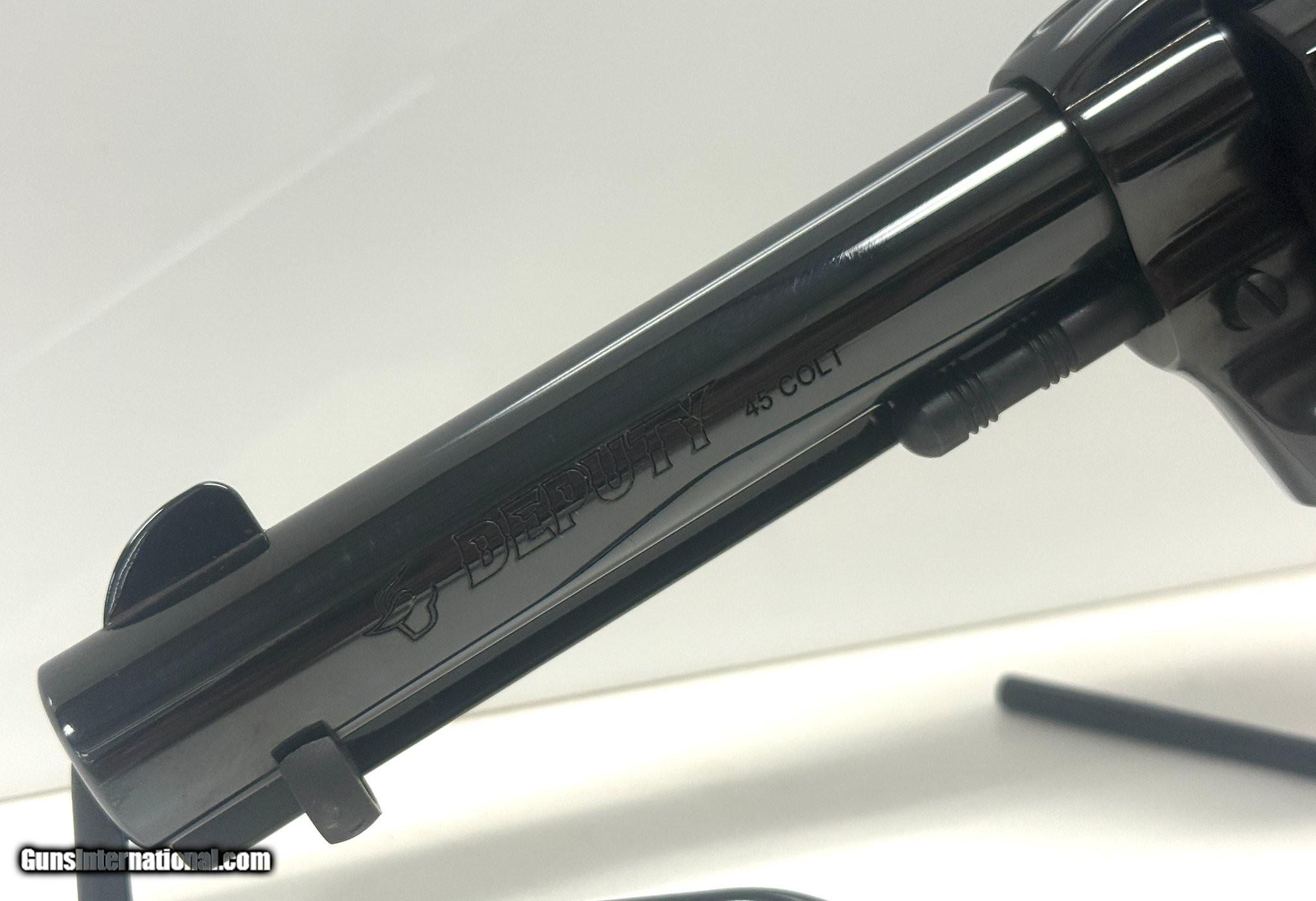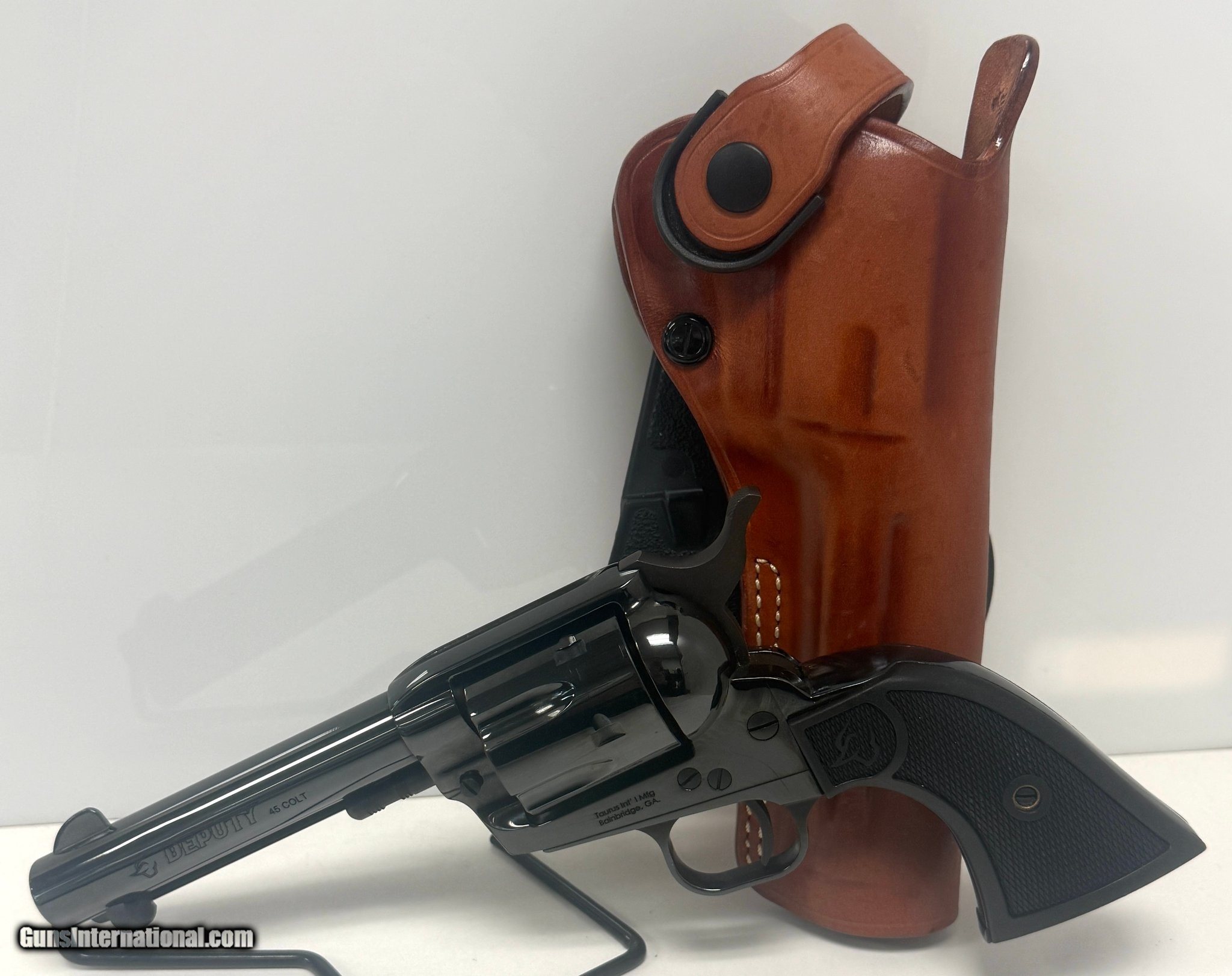 Description: Guns Listing ID: 576679 TAURUS TAURUS DEPUTY - .45 LC - 6 ROUNDS - 5.5\" BARREL REVOLVER PLUS HOLSTER GREAT used condition - See photos for details. Included: Revolver and holster SOLD Manufacturer: TAURUS Model: TAURUS DEPUTY Caliber Info: .45 LC Condition: Used - Non-Certified Barrels: 5.5" BARREL Action: REVOLVER Finish: black blued |