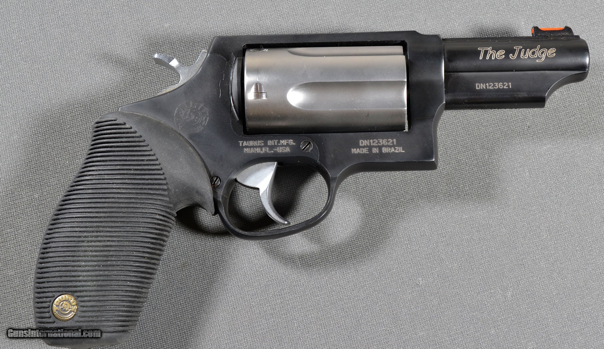 Description: A two-tone Taurus Judge chambered for .45 Colt and .410 Gauge .45 Colt / 410 Gauge SOLD Barrels: 3 inches Item Location: Lacey, WA |