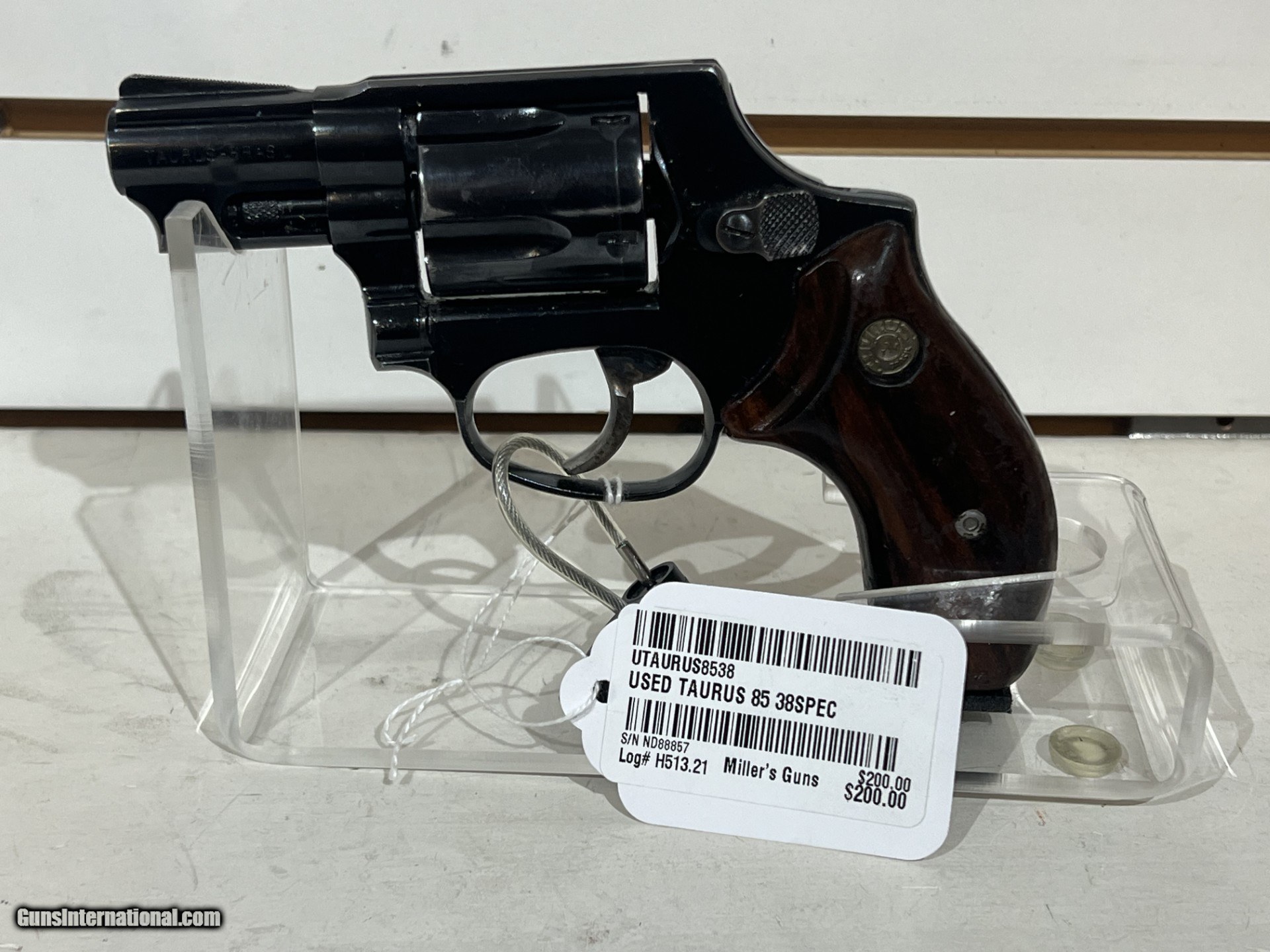 Description: Pre Owned Caliber 38 spl capacity 5 rounds SOLD Handgun Caliber: .38 Special Manufacturer: Taurus Model: 85 Serial Number: ND88857 Condition: Good Metal Condition: Good Bore Condition: Good |