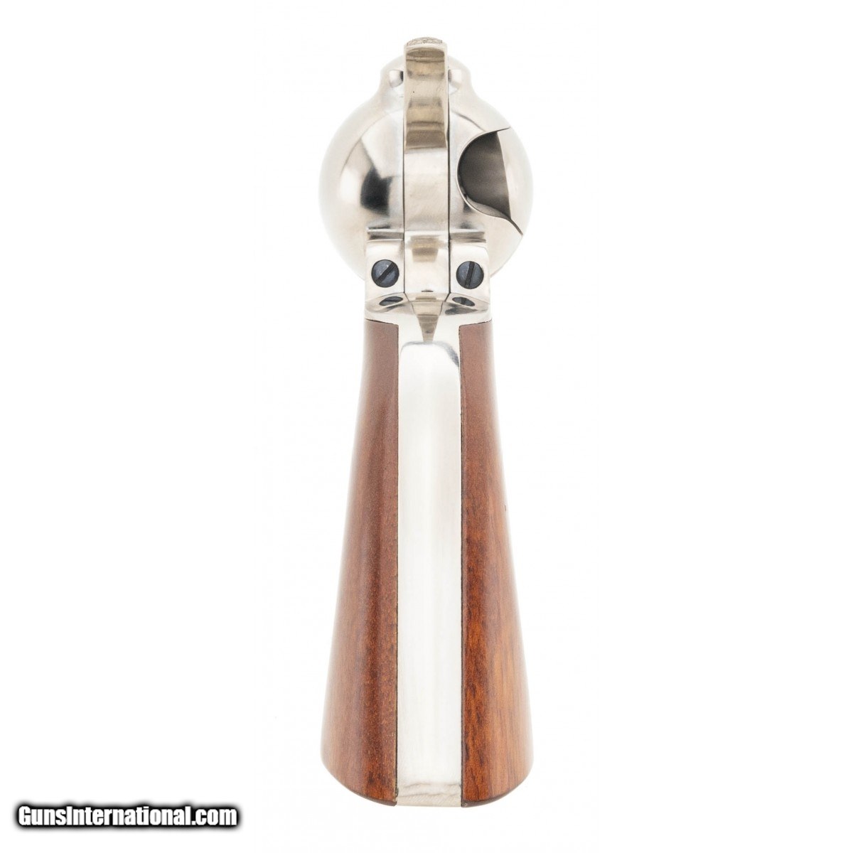 Description: " SN: UP4889. Nickel plated Single action revolver with 5.5"" barrel and Nitre blue small parts. Overall excellent condition. Comes with box and sleeve. SOLD |