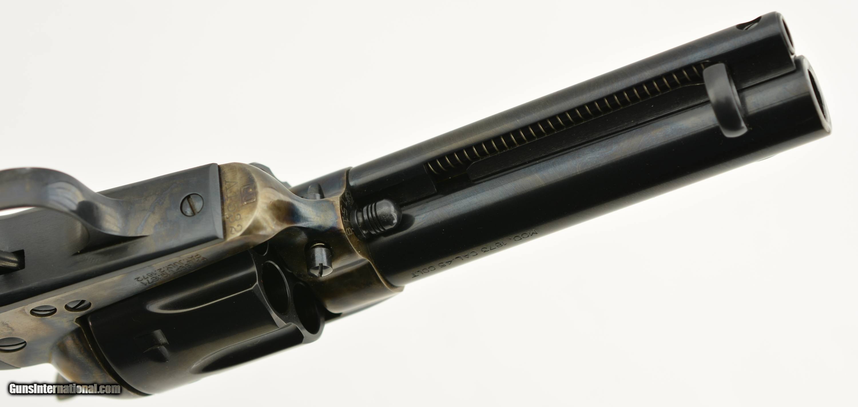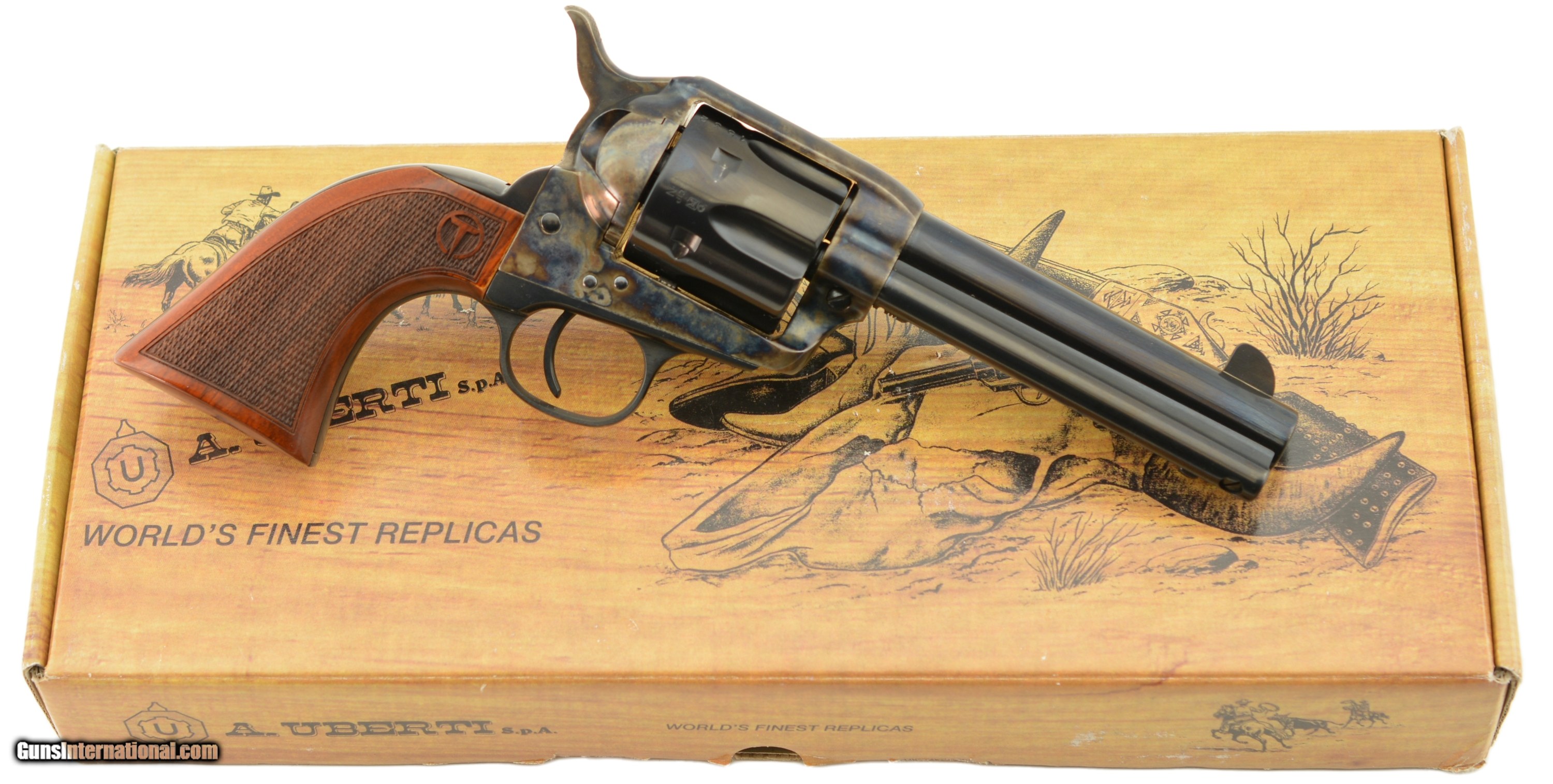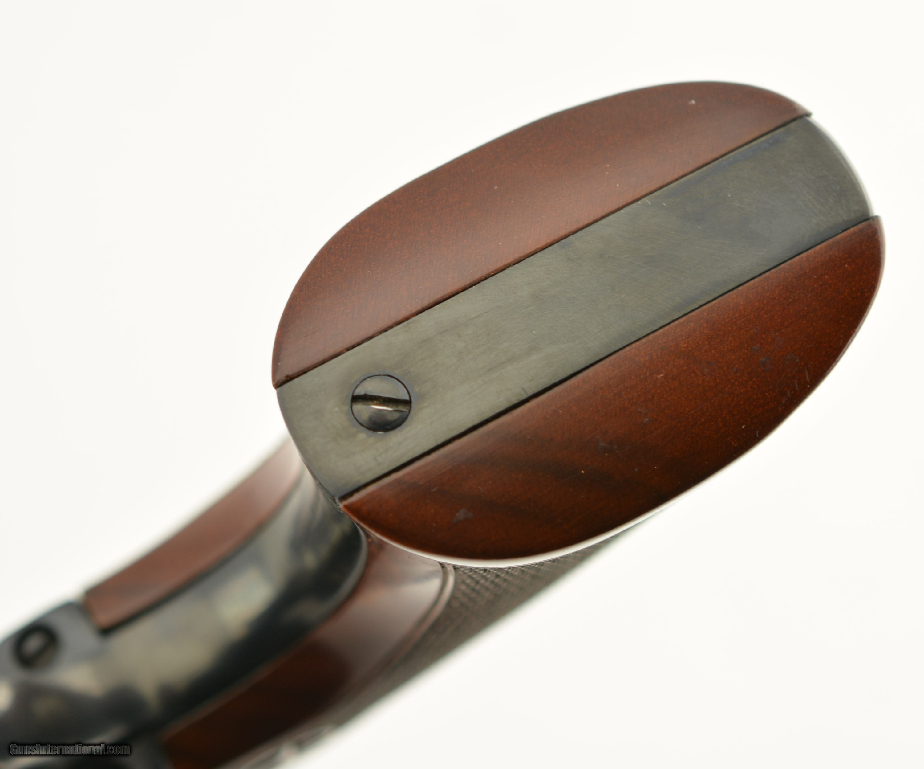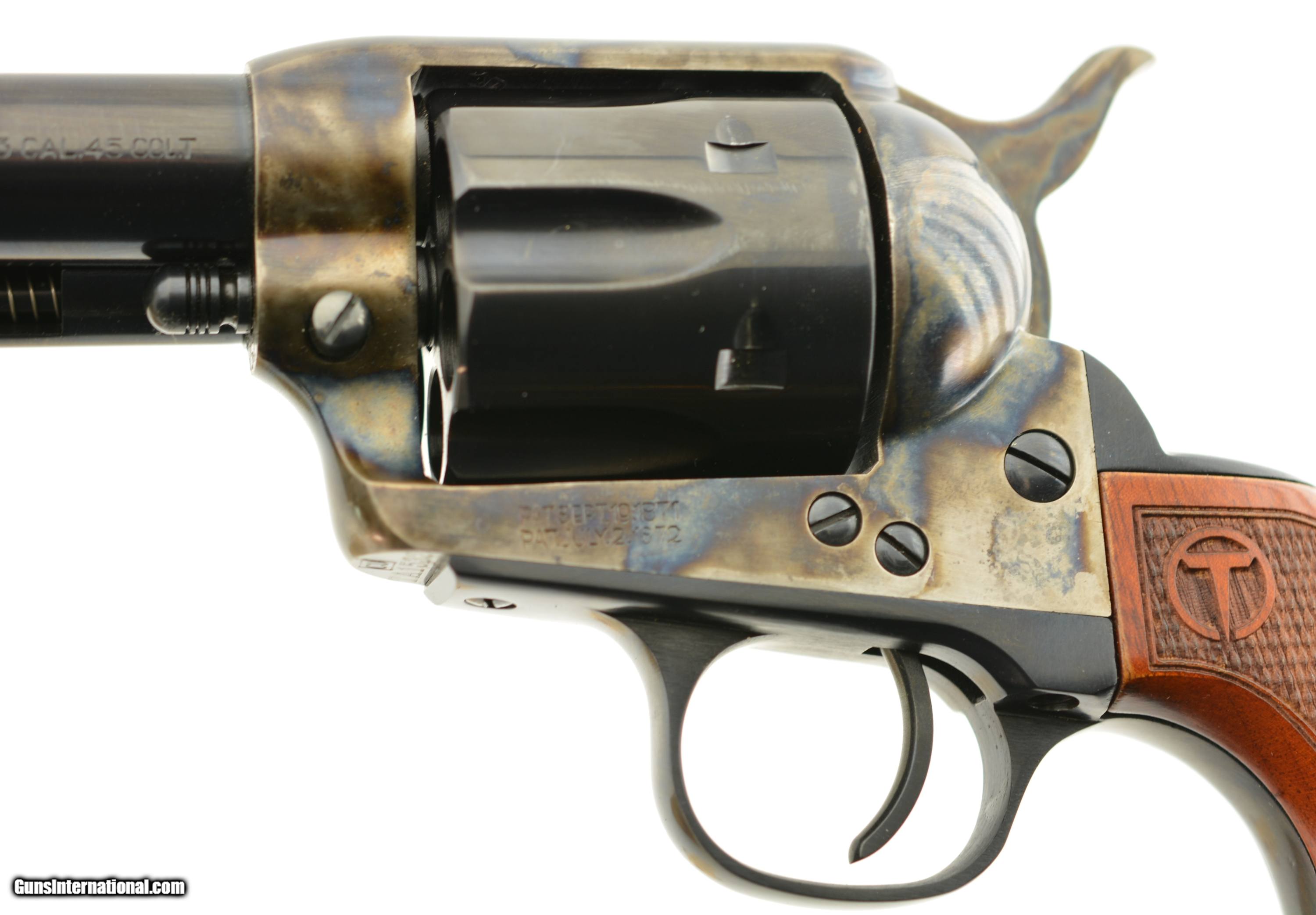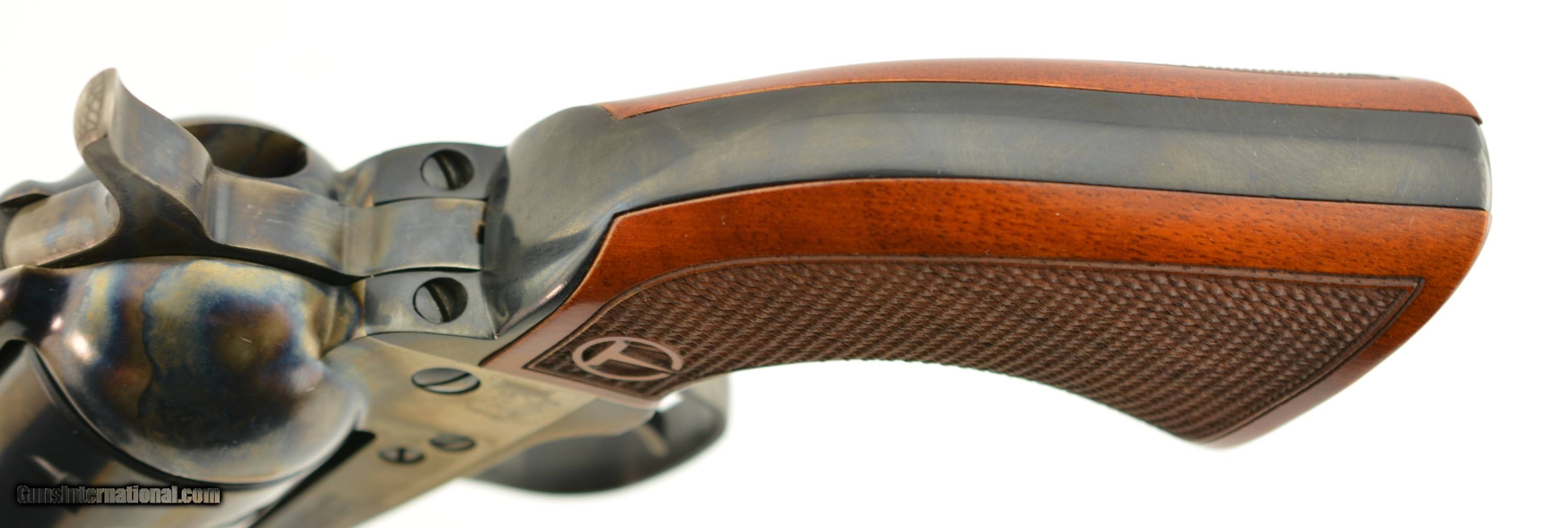 Description: Serial #TA1532, .45 Long Colt, 4" inch barrel with a bright, excellent bore. This is the Taylor's & Co. Smokewagon model 1873 SAA manufactured in Italy by A. Uberti (#REV4109DE) that has a "Taylor Tuned" action and features laser-engraved Taylor logo checkered grips and a beautiful case color frame. In excellent, like new condition, the barrel and grips frame retain virtually all, 99% plus, original blue finish with the frame and hammer showing beautiful case color. The grips are likewise excellent with very little evidence of handling. It comes in the original box numbered to the gun with paperwork and manual. A great looking revolver for the Cowboy Action shooter. FFL SOLD |