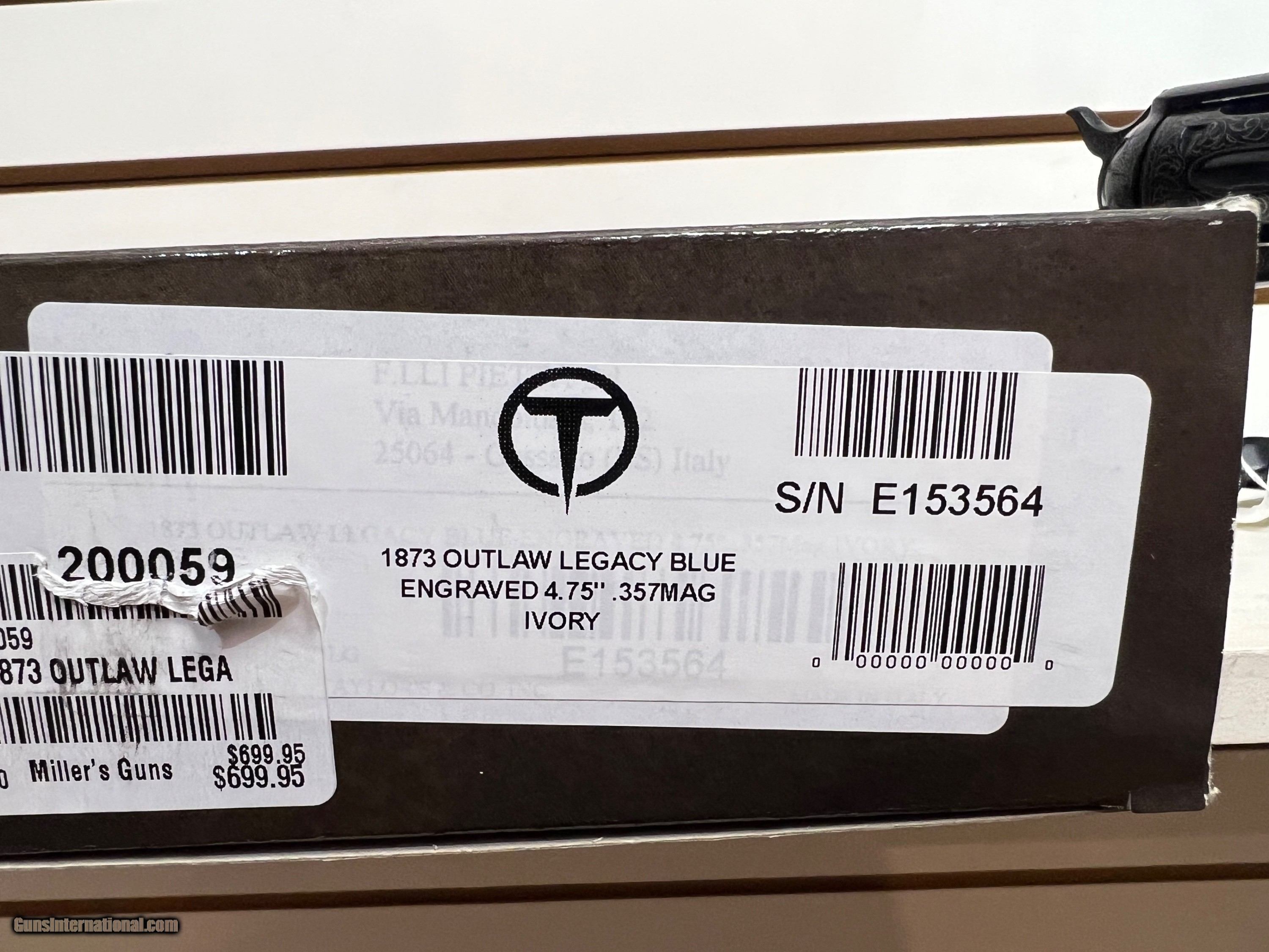 Description: new Taylor's & Company 1873 Outlaw Legacy Blue 357 Mag 4.75" Barrel 200059 new Buyer pays shipping Millers Gun Center Located in New Castle, Delaware "Home of TAX-Free shopping" No Credit Card Fees Send Gun international inquiry and then call 302-328-9747 to complete your purchase SOLD Serial Number: E153564 |