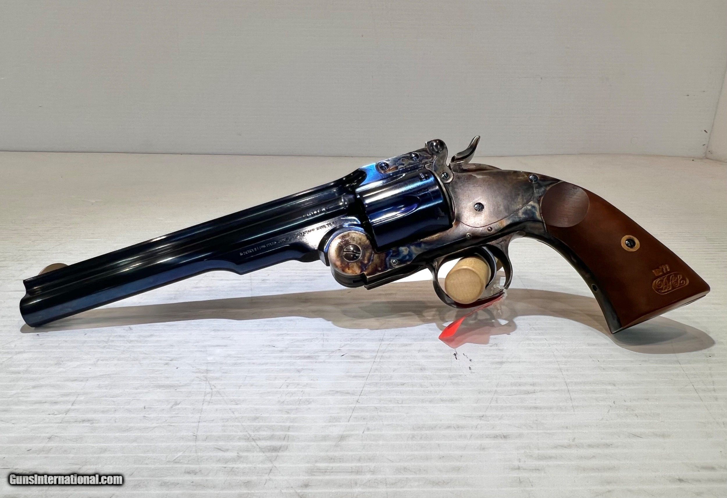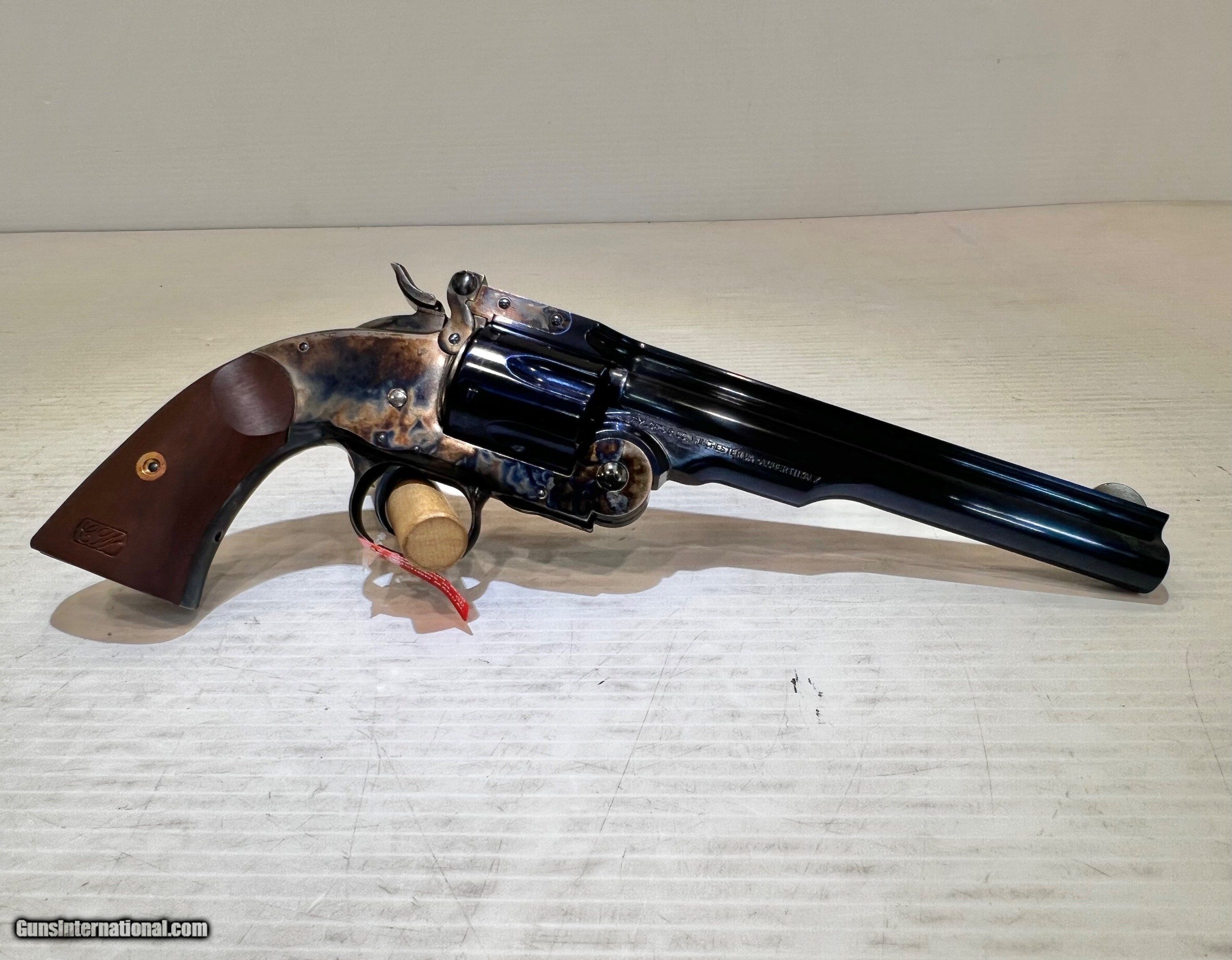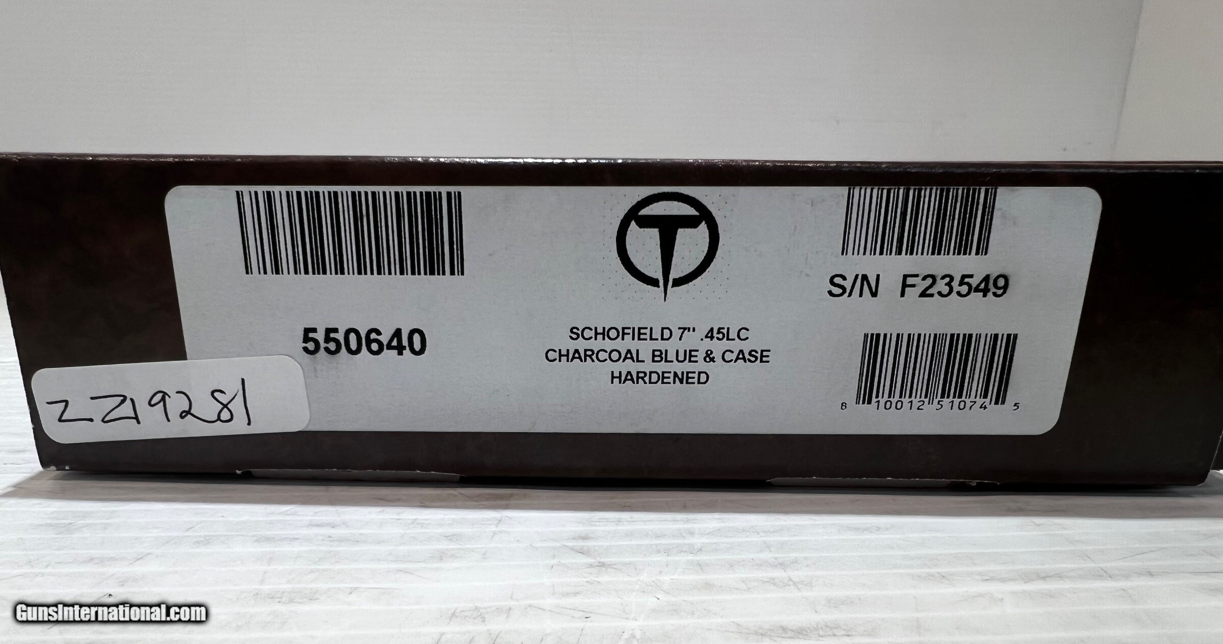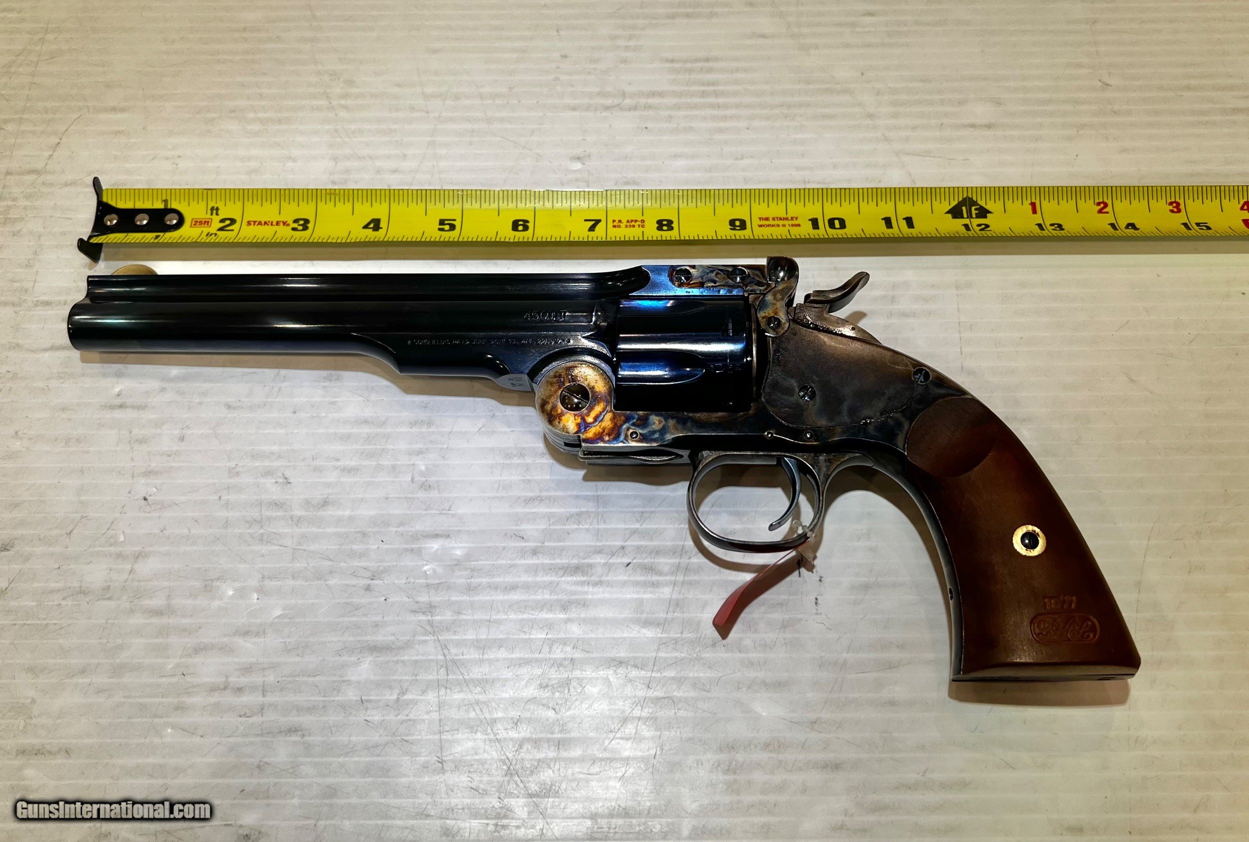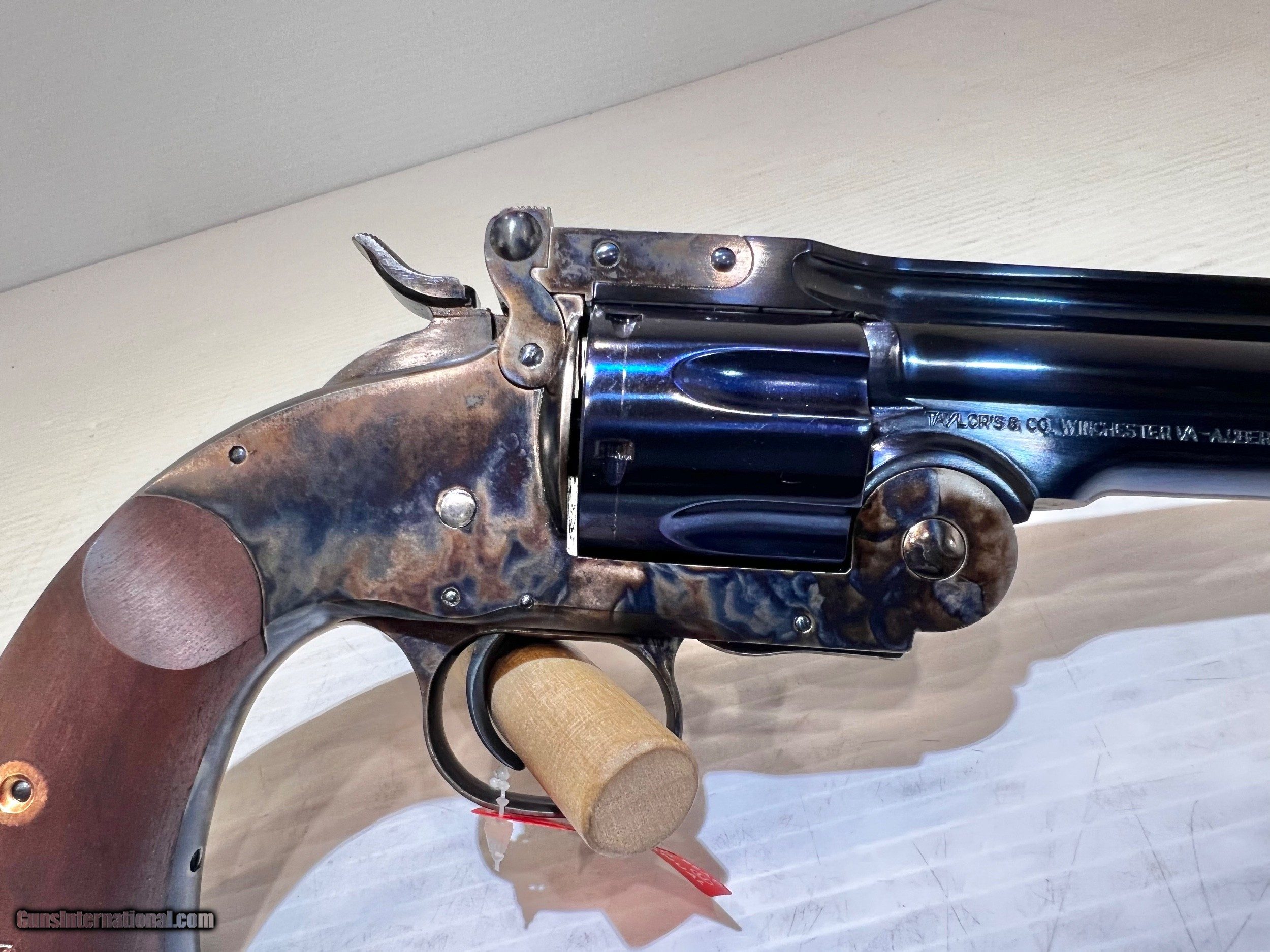 Description: New Taylor Schofield .45LC, Top Break Revolver, 7" Barrel 6 Round Cylinder, Blued Barrel & Cylinder, Case Hardened Frame, Wood Grip, With Case, With Box. SKU #550640 WE DO NOT SHIP INTERNATIONALLY $30 Shipping. Pictures are of the item listed. Must be shipped to an FFL holder. The item is on display at our shop but will be taken off the shelf once the starting is met. Please feel free to contact us directly. Three-day inspection from date items arrives at your FFL. Payment may be personal or cashier's check, money order, or credit card "3% surcharge for credit card". QUESTIONS? CALL/TEXT STEVE AT 580.327.7372 SOLD Handgun Caliber: .45 Colt Serial Number: F23549 zz19281 |