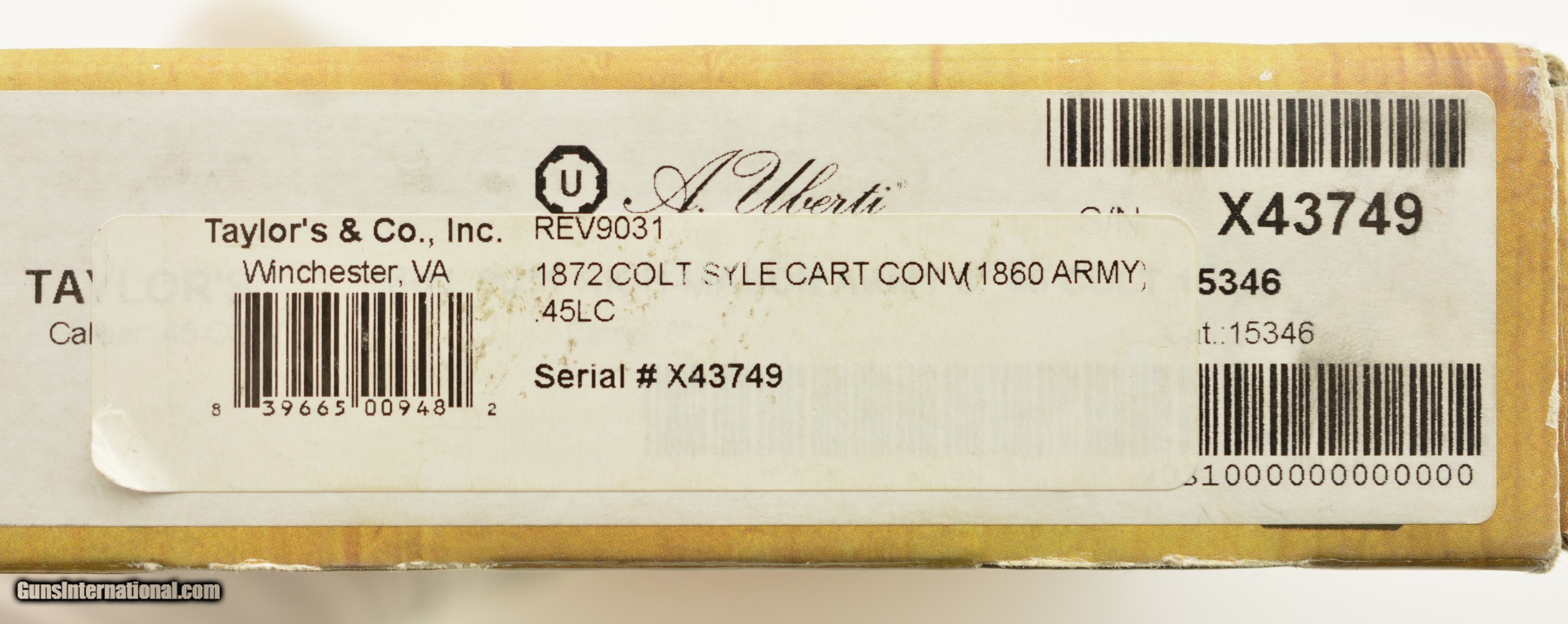 Taylor's Uberti 1872 Open Top Colt Style Cart Conv. 1860 Army 45 LC