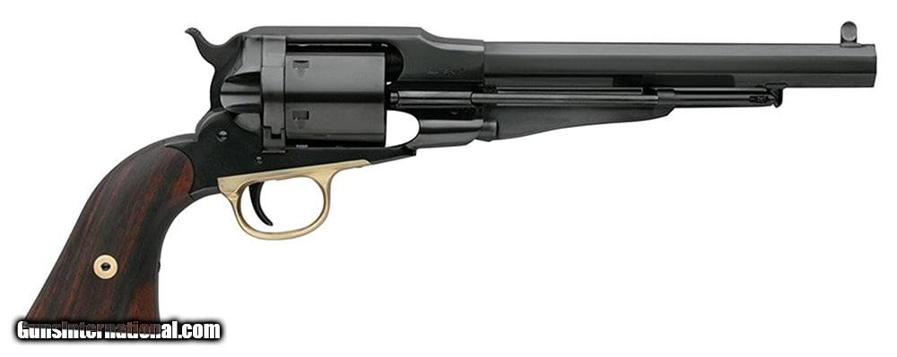 Description: Guns Listing ID: 154276 This versatile firearm provides for an easy transition from black powder to centerfire cartridges. The guns original frames were dovetailed to allow the ejector assembly to slide into place. A loadinglever screw passing through from the left side of the frame secures the ejector assembly. A small notch cut into the loading lever creates a rest for the Lshaped tip of the ejector rod. The firearm is steel with steel backstrap and brass trigger guard. SOLD Manufacturer: TAYLOR‚S & CO. Model: 1858 Caliber Info: .45 LC Condition: new Barrels: 8" BARREL Action: REVOLVER Finish: BLUED Weight: 2.6 LBS. |