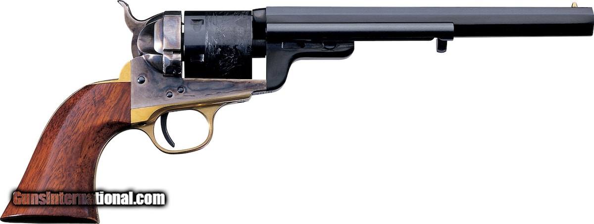 Description: Guns Listing ID: 278894 Taylors and Company reproduction of the C. Mason Revolver. With patents for the conversion of percussion revolvers Colt employees Charles Richards and William Mason cut off the capandball cylinders at the back and installed a conversion ring to accept cartridges. These conversion revolvers were favorites then and are enjoying popularity again as part of the sport of Cowboy Action Shooting. This revolver has a case hardened frame with blue finish. It comes with walnut Navy size grips brass back strap and trigger guard Octagonal barrel and brass post front sight. SOLD Manufacturer: TAYLOR‚‚S & CO Model: 1851 NAVY Caliber Info: .38 SPL Condition: new Barrels: 7.5 BARREL Finish: BLUED |