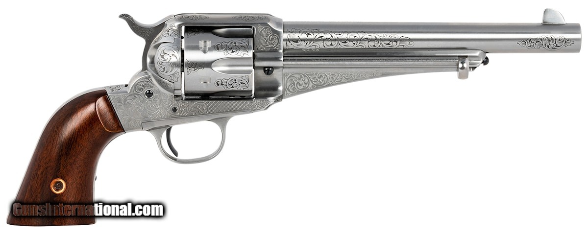 Description: Guns Listing ID: 284739 The 1875 Army Outlaw Revolver is a faithful reproduction of the 1875 Remington single actions which kept the solid frame and overall styling of Remingtons 1858 percussion models. Ordinary citizens and Wild West lawmen alike recognized the sturdy quality of the Remington revolvers. The infamous Frank James even carried one for most of his outlaw career. The reproduction is available in his favorite caliber 45 colt and features a steel backstrap and twopiece walnut grip. SOLD Manufacturer: TAYLOR‚‚S & CO Model: 1875 Caliber Info: .45 LC Condition: new Barrels: 7.5 BARREL Finish: NICKEL |