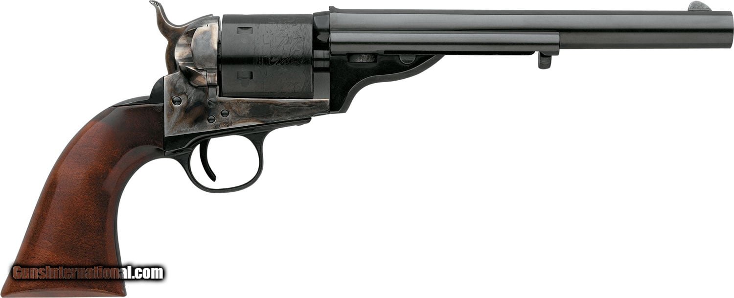 Description: Guns Listing ID: 154269 Taylors and Company has reproduced the 1872 OpenTop Single 45 Long Colt. It has a 7.5 barrel Walnut Army size grips Case Hardened frame and blue finish. This revolver weighs 2.51lbs has a 6 round cylinder and features a front blade with rear sights on the back of the barrel.\ SOLD Manufacturer: TAYLOR‚‚S & CO Model: 1872 Caliber Info: .45 LC Condition: new Barrels: 7.5 BARREL Action: REVOLVER Finish: BLUED Weight: 2.6 LBS. |