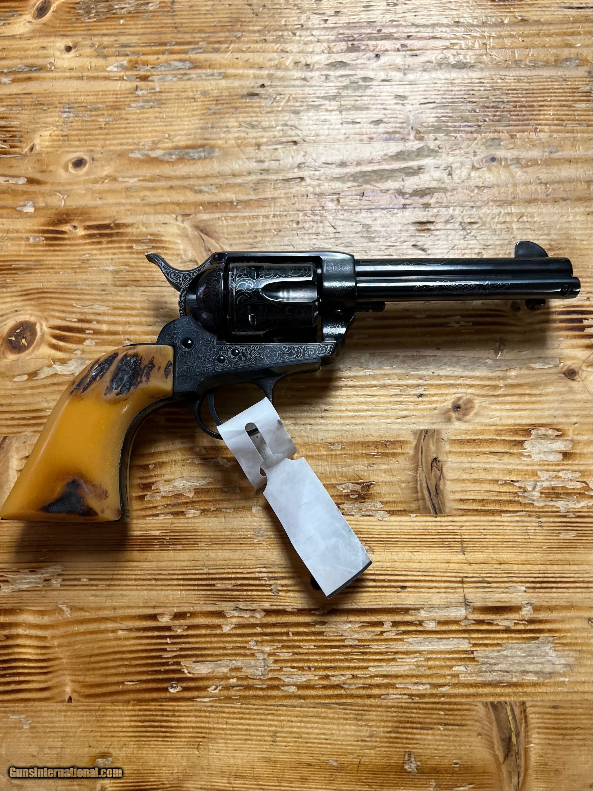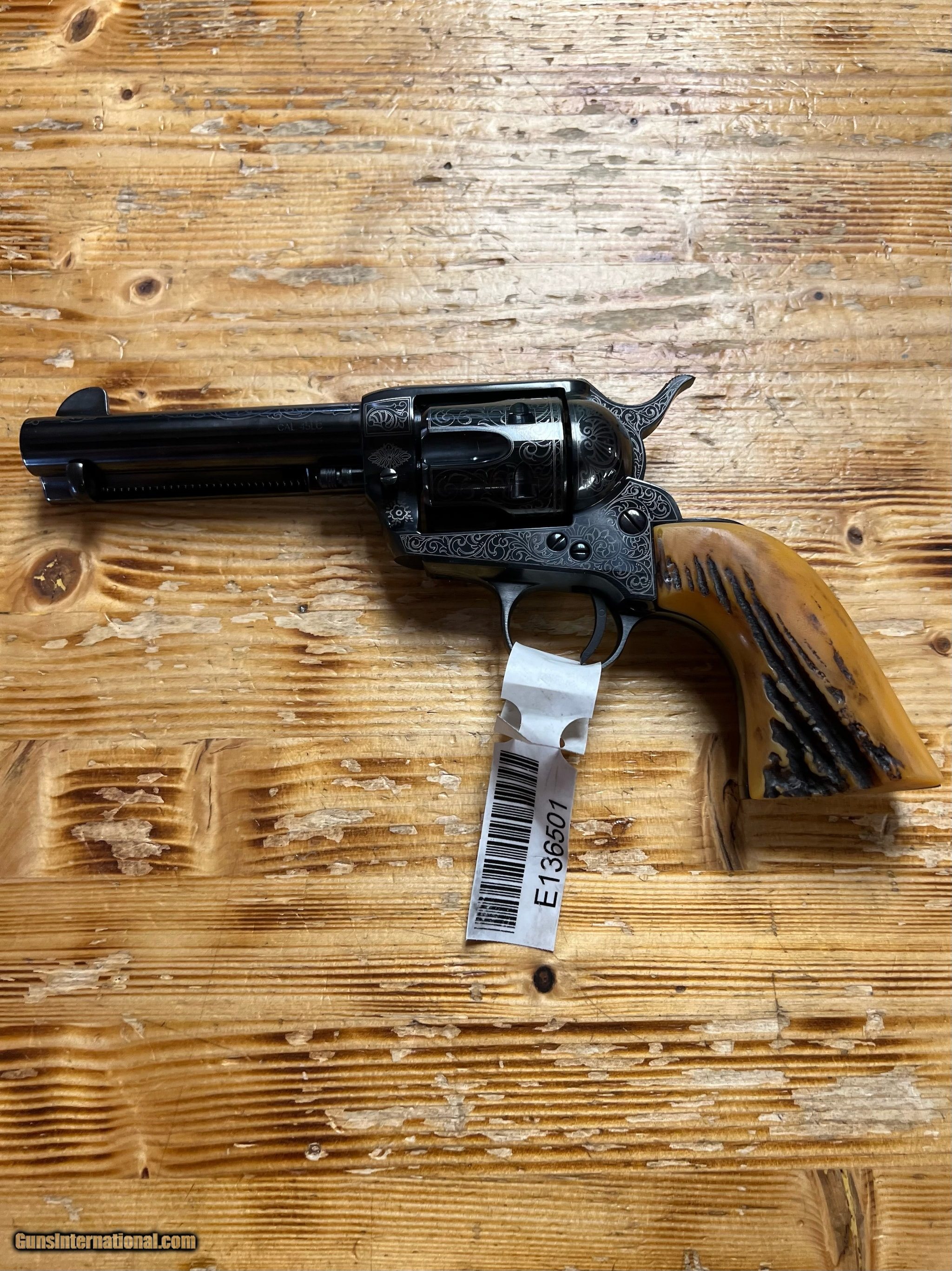 Description: Guns Listing ID: 967055 This firearm is in excellent shape and appears to have only been handled and stored. Original grips were swapped to the pictured stag grips however the firearm does include the box, papers, and original grips as well. Engraving and finish are in perfect shape. SOLD Manufacturer: TAYLOR‚‚S & CO Model: 1873 Caliber Info: .45 LC Condition: Used - Non-Certified Barrels: 4.8 BARREL Finish: BLUED |