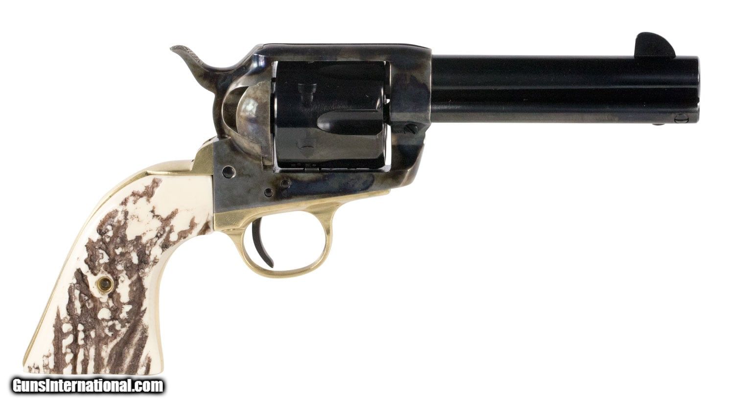 Description: Guns Listing ID: prod145141 The Cattleman is a classic western sixshot revolver. Taylors Co. is proud to bring a collection of the finest S.A. Cattleman Model 1873 revolvers being manufactured today. These singleaction models are manufactured using the highest quality standards available. The frame is forged which results in better grain structure and strength perfect to allow the revolver to perform better in an abusive situation like competitive shooting with an extended life. This model features a steel case hardened frame with stag grips. SOLD Manufacturer: TAYLOR‚‚S & CO Model: 1873 Caliber Info: .45 LC Condition: new Barrels: 4.8 BARREL Finish: BLUED |