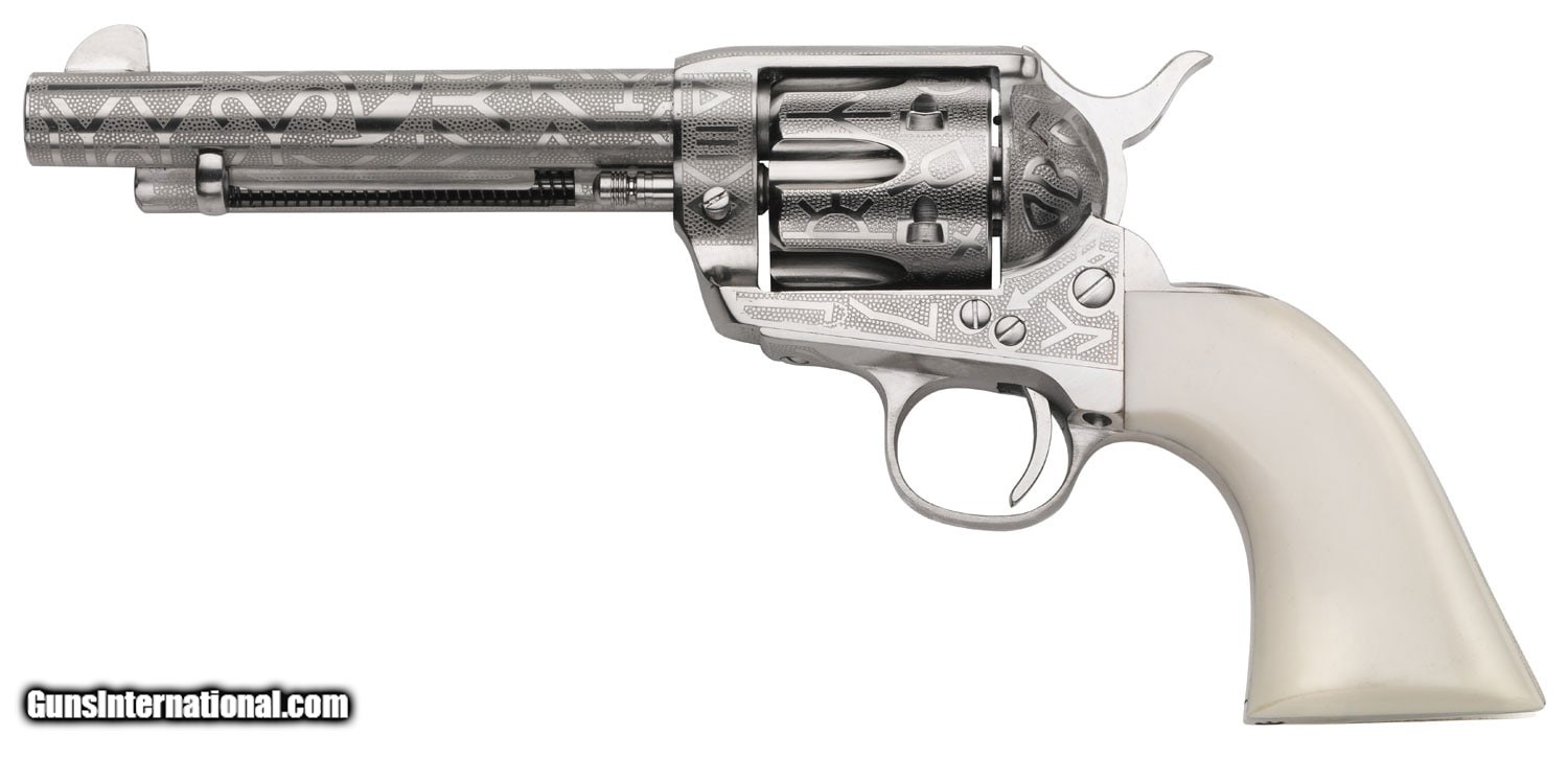 Description: Guns Listing ID: prod232534 The Outlaw Legacy Revolvers were designed with the Outlaw Gang to combine beautiful finish features with their organization‚‚s slogan \"God-Guns-Freedom\". These revolvers are offered in cost effective beautiful finish options. The Outlaw Legacy Nickel Engraved features a nickel plated steel frame, nickel plated laser engraved parts, and a white polymer Navy size grip SOLD Manufacturer: TAYLOR‚‚S & CO Model: 1873 OUTLAW Caliber Info: .45 LC Condition: new Barrels: 5.5 BARREL Finish: NICKEL |