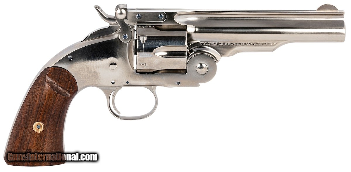 Description: Guns Listing ID: 743621 Designed by Major George Schofield to be operated with one hand while on horseback a breakopen pistol was ideal for mounted soldiers in the U.S. Cavalry. Shooters could easily eject all six spent cartridges and reload while on horseback. The top break pistol also proved useful to the likes of Jesse James and Wild Bill Hickok. The Schofield barrel latch opens by pulling it back with the thumb and includes the rear sight notch. SOLD Manufacturer: TAYLOR‚‚S & CO Model: SCHOFIELD Caliber Info: .45 LC Condition: new Barrels: 5 BARREL Finish: NICKEL |