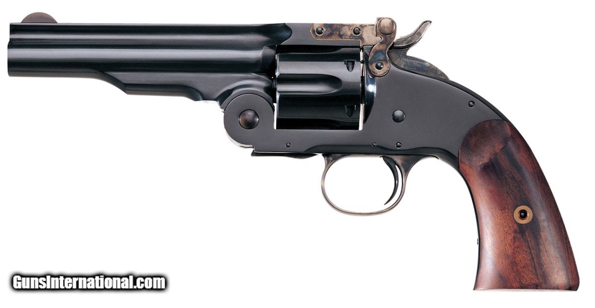 Description: Guns Listing ID: 570381 Taylors hand gun line are replicas copying the original designs but built with todays high quality standards in mind. The Schofield model was designed to be operated with one hand while on horseback making it ideal for soldiers in the U.S. Cavalry. The breakopen pistols barrel latch opens by pulling it back and has a rear sight notch incorporated into it. This 45LC model has a 5 barrel blued metal finish walnut grip and a fixed blade front sight.\ SOLD Manufacturer: TAYLOR‚‚S & CO Model: SECOND MODEL Caliber Info: .45 LC Condition: new Barrels: 5 BARREL Finish: BLUED |
