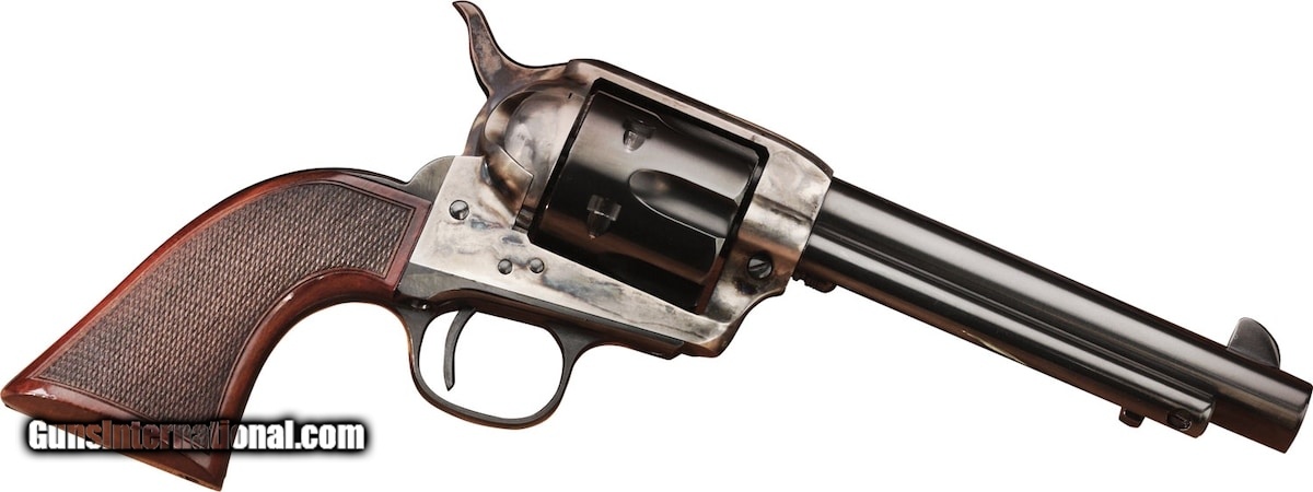 Description: Guns Listing ID: 593706 Taylors and Company have reproduced the Short Stroke Smoke Wagon revolver. This revolver has a 512 barrel and is chambered in .357 magnum with a capacity of 6 shells. This short stroke revolver is an improved single action revolver perfect for competition shooting or the avid arms collector. It features a blue finish with a case hardened frame and a richly detailed checkered Navy grip for comfort and improved aim. This pistol has been Taylor Tuned and has a trigger pull set at three pounds. The Taylor Tuned action features one of the smoothest hammer and trigger pulls on the market. The sight channel has been widened and front blade widened.\ SOLD Manufacturer: TAYLOR‚‚S & CO Model: SHORT STROKE SMOKE WAGON Caliber Info: .357 MAG Condition: new Barrels: 5.5 BARREL Finish: BLUED |