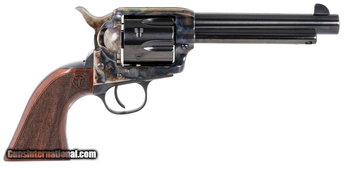 Description: Guns Listing ID: 283188 Taylors Smoke Wagon is an improved second generation stagecoach style single action revolver. The Smoke Wagon model features a forged case hardened steel frame blued steel parts a checkered Navy size grip with a thinner profile and a lowsitting hammer. SOLD Manufacturer: TAYLOR‚‚S & CO Model: SMOKE WAGON Caliber Info: .45 LC Condition: new Barrels: 5.5 BARREL Finish: BLUED |