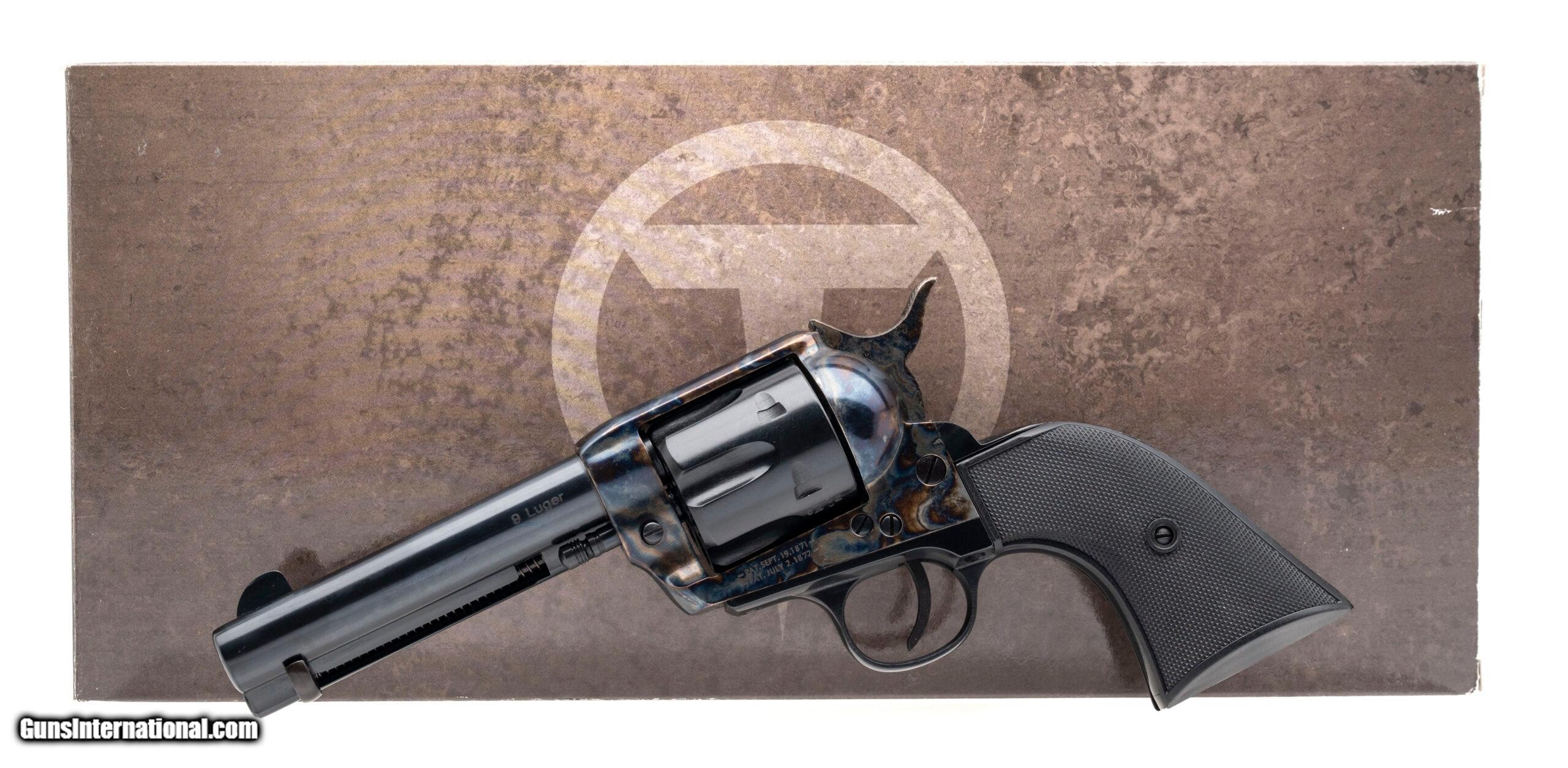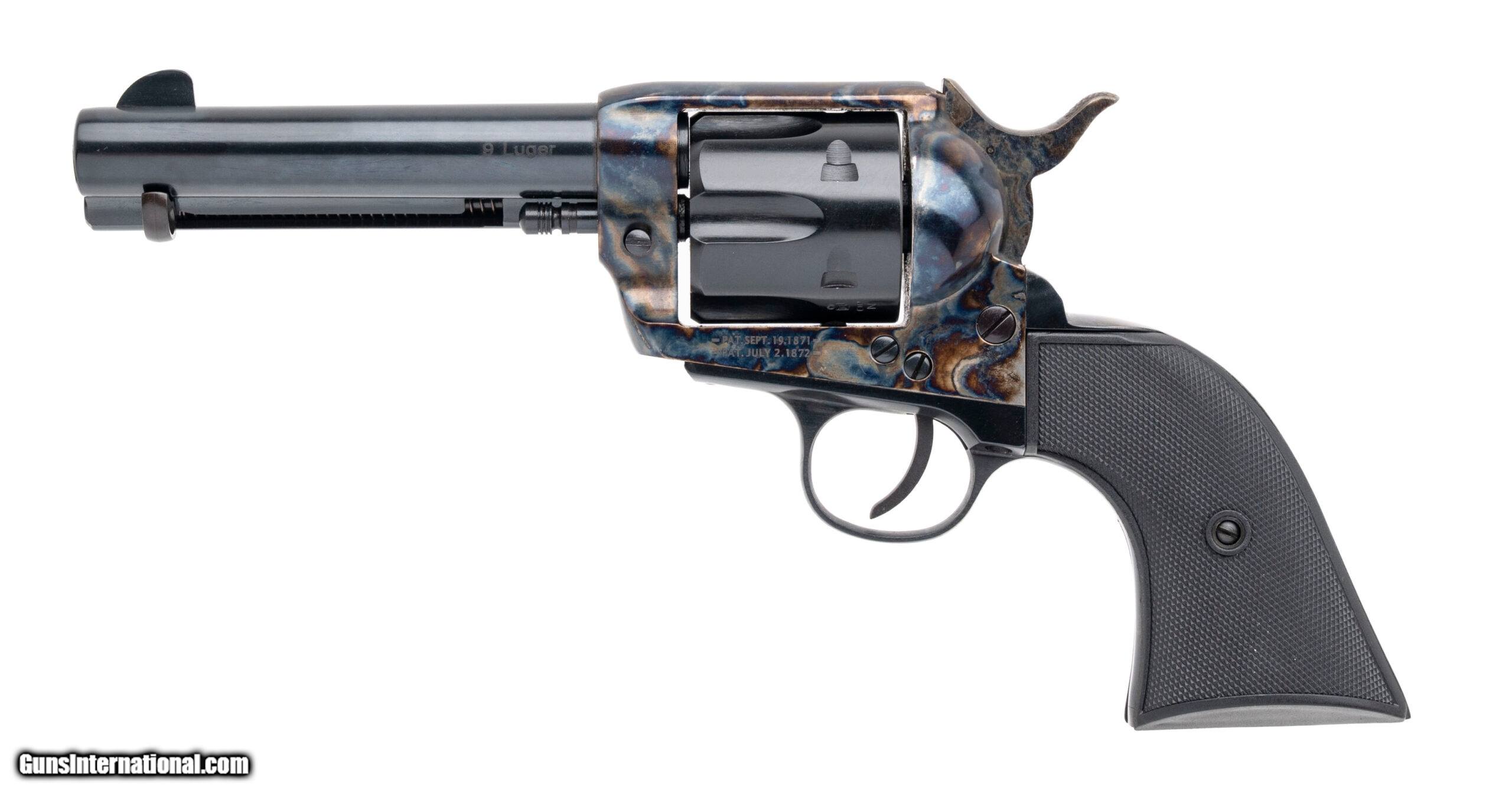 Description: "Taylor's & Company TC9 1873 Revolver 9mm with an 4"" Barrel. Fixed Blade Front and Notch Rear sight with black checkered grips. S/A Revolver with a steel frame and Cased Color Finished Receiver. NEW. UPC: 810012512480. Price: $670.50 Contact Seller |