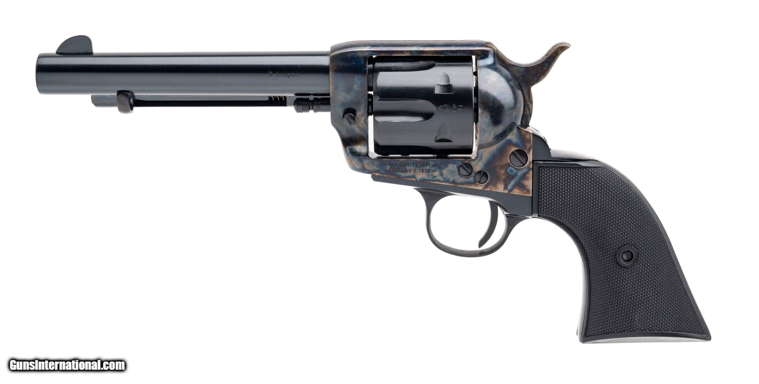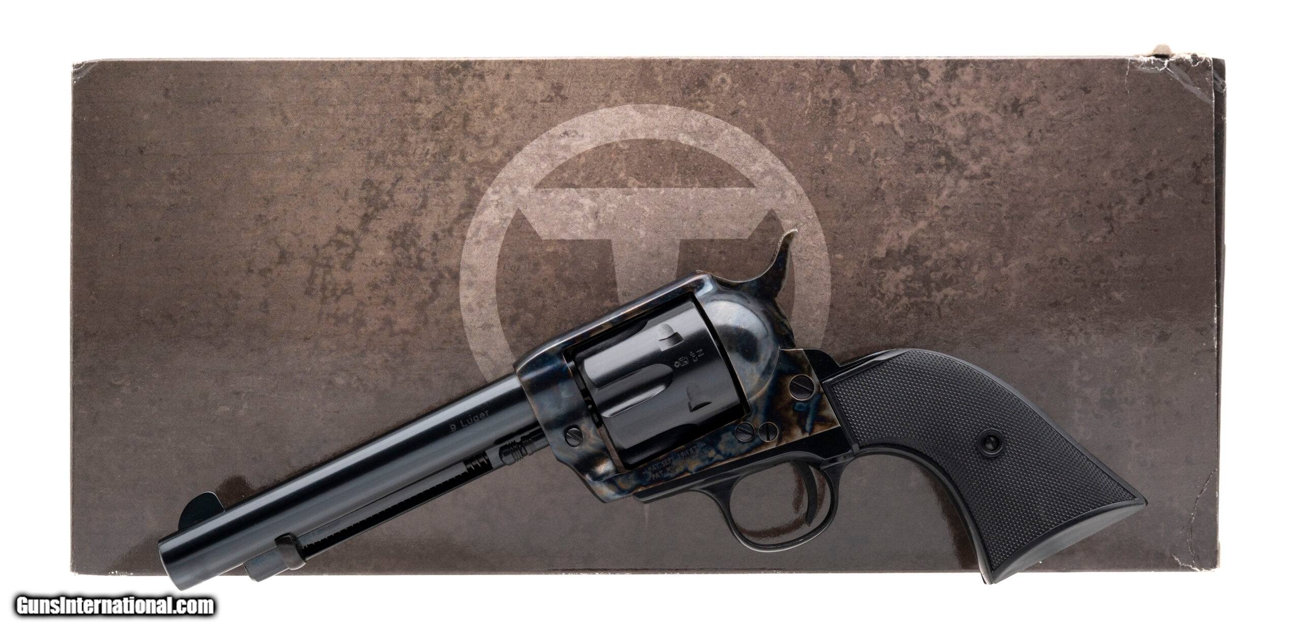 Description: "Taylor's & Company TC9 1873 Revolver 9mm with an 4.75"" Barrel. Fixed Blade Front and Notch Rear sight with black checkered grips. S/A Revolver with a steel frame and Cased Color Finished Receiver. NEW. UPC: 810012512473. Price: $620.00 Contact Seller |