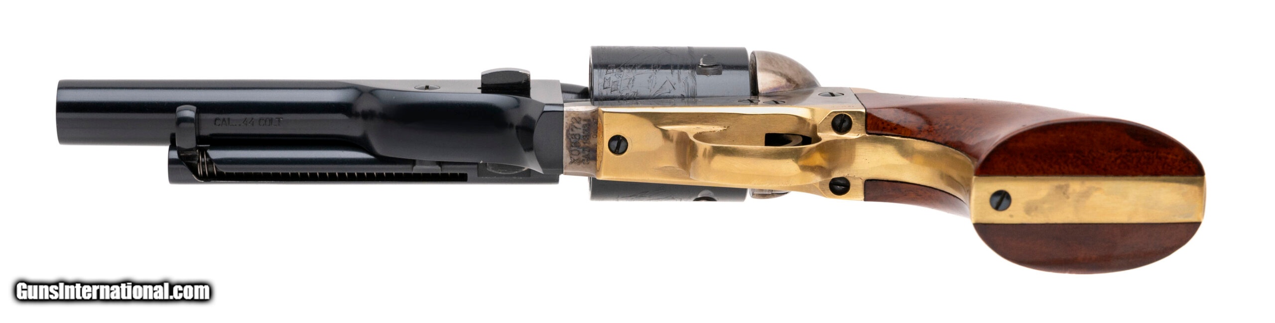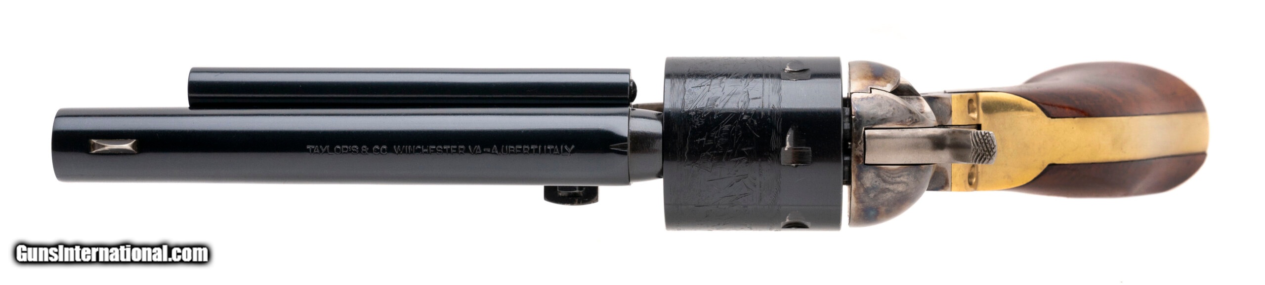 Description: "SN: X06672. Modern production .44 Colt with a 5.5"" barrel. Cowboy sixgun with brass trigger guard frame, imported by Taylor's & Co. Excellent condition. SOLD |