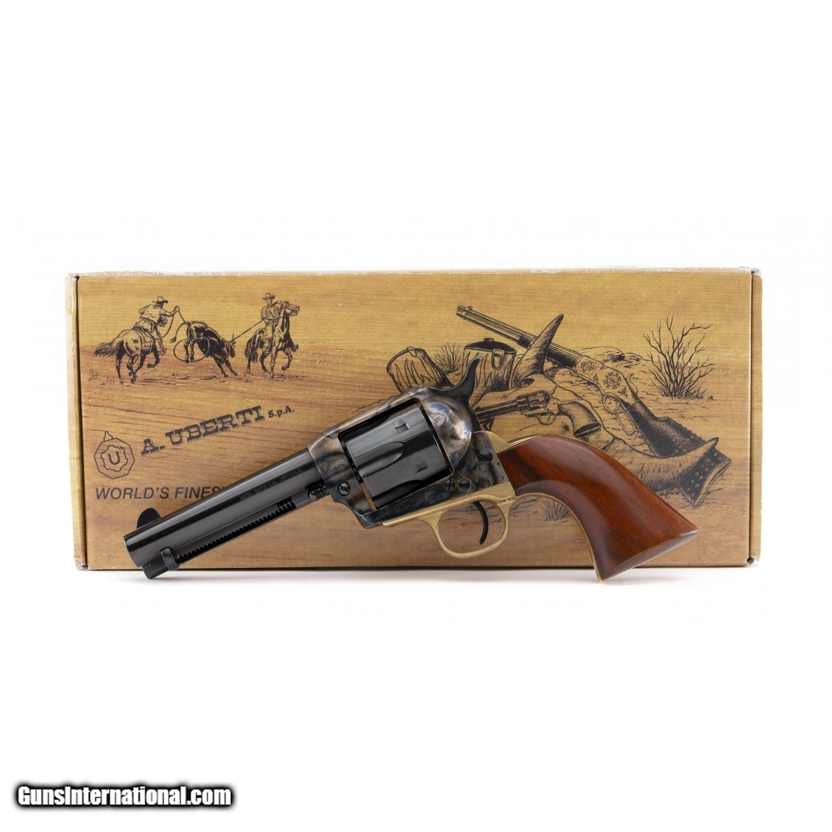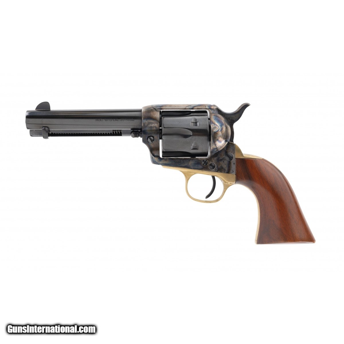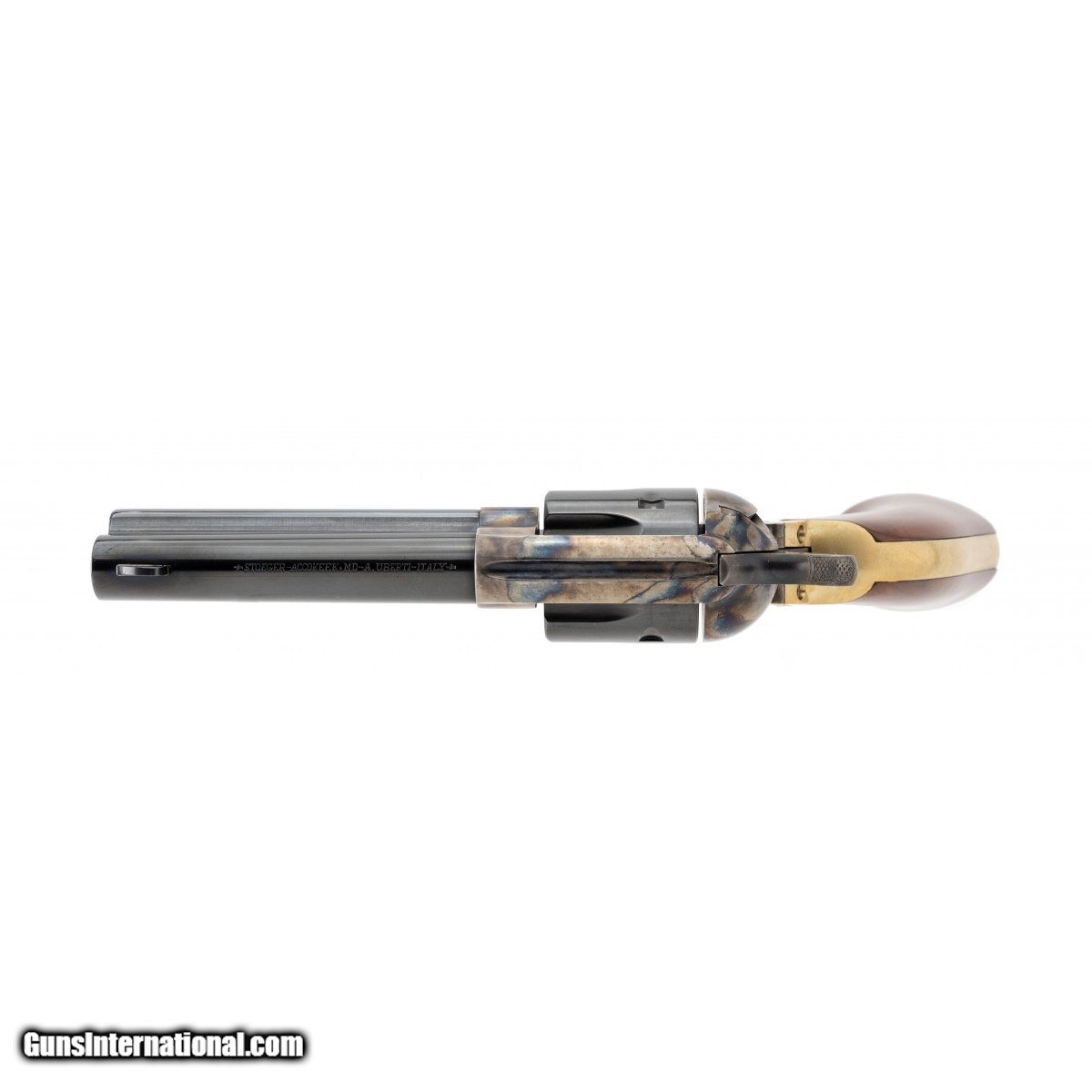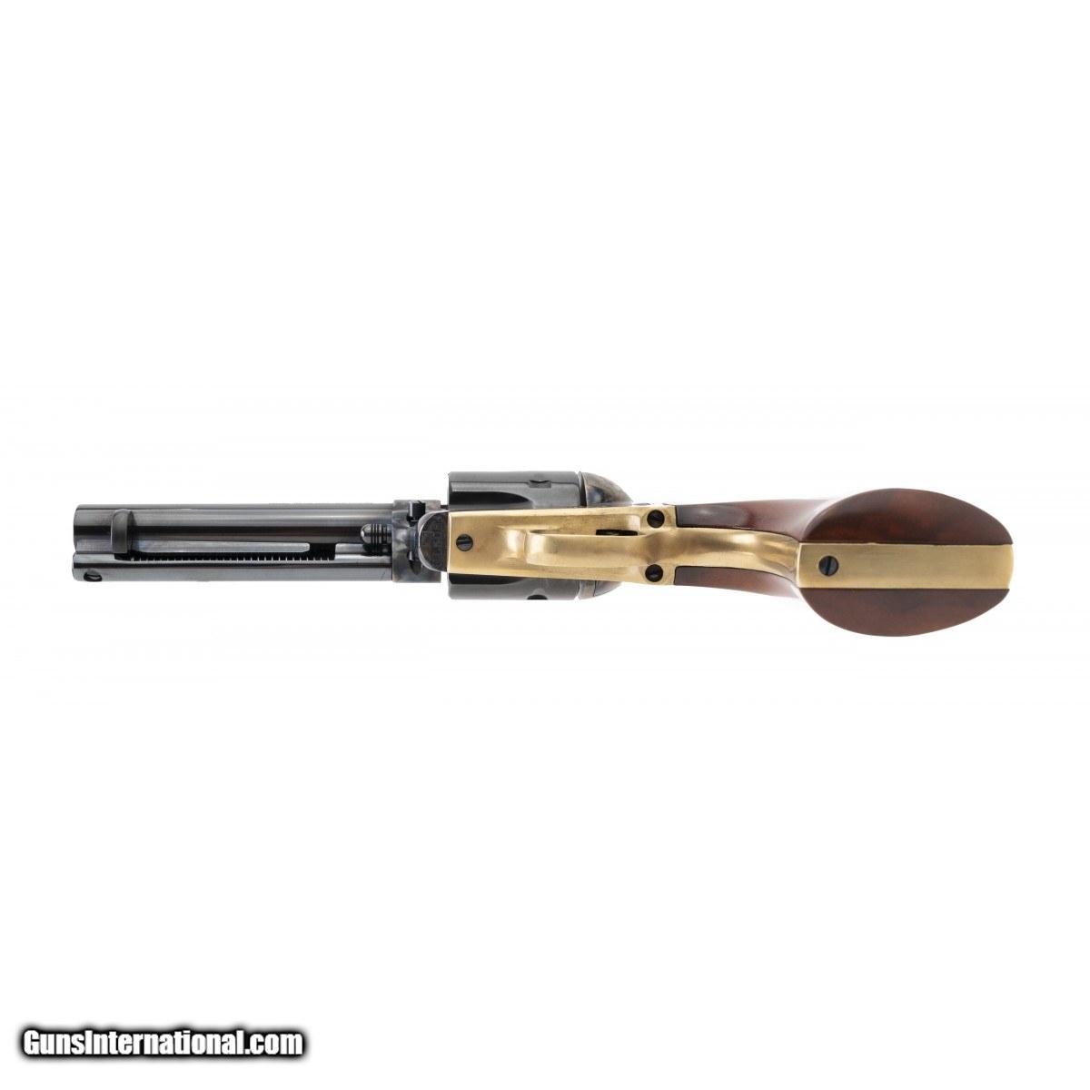 Description: " 4.75"" Sixgun with blue/case colors and brass grip frame. Excellent condition. with box. SOLD |