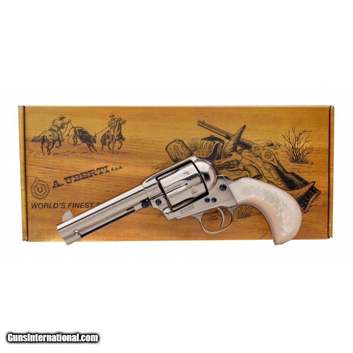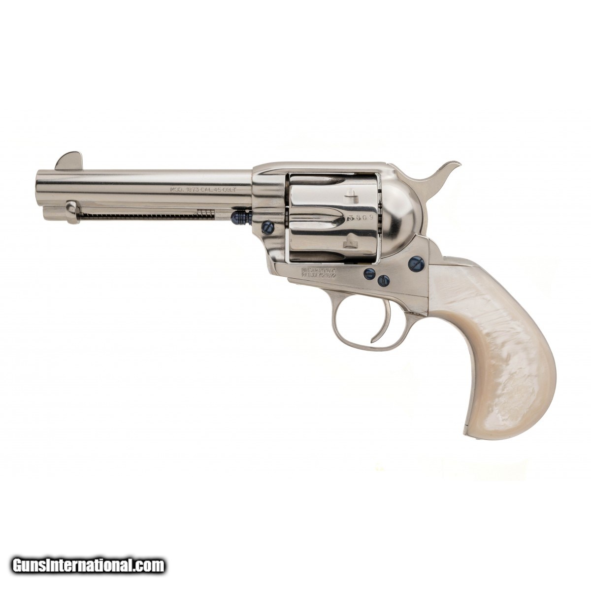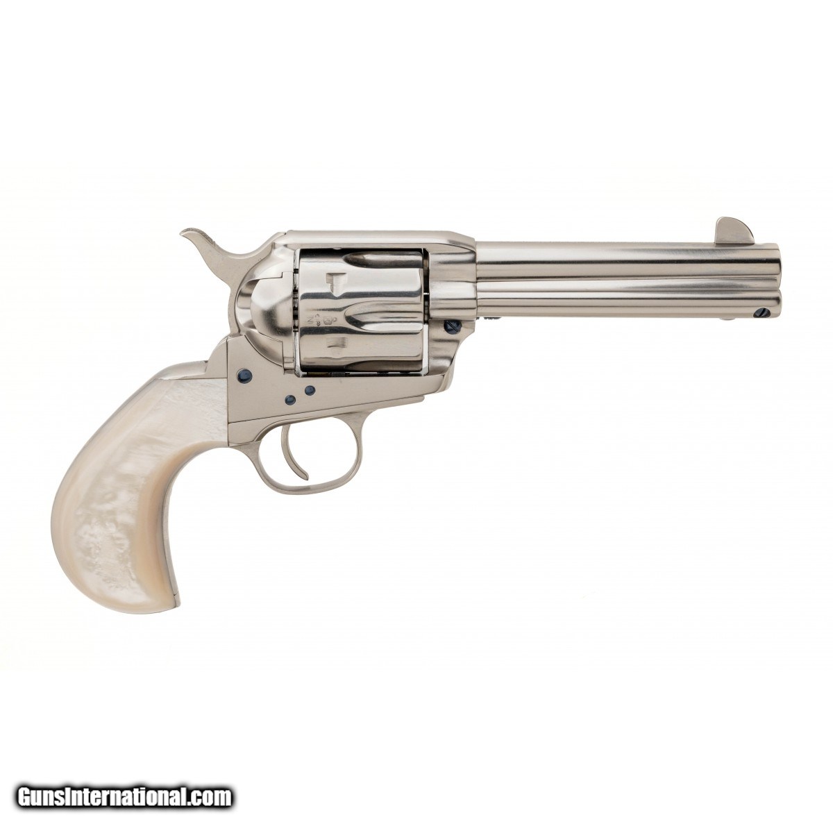 Single action Revolver with a 4.75"" Barrel, chambered in .45 Long Colt with a nickel steel plated finish and pearl-style grips. NEW. UPC: 037084960180