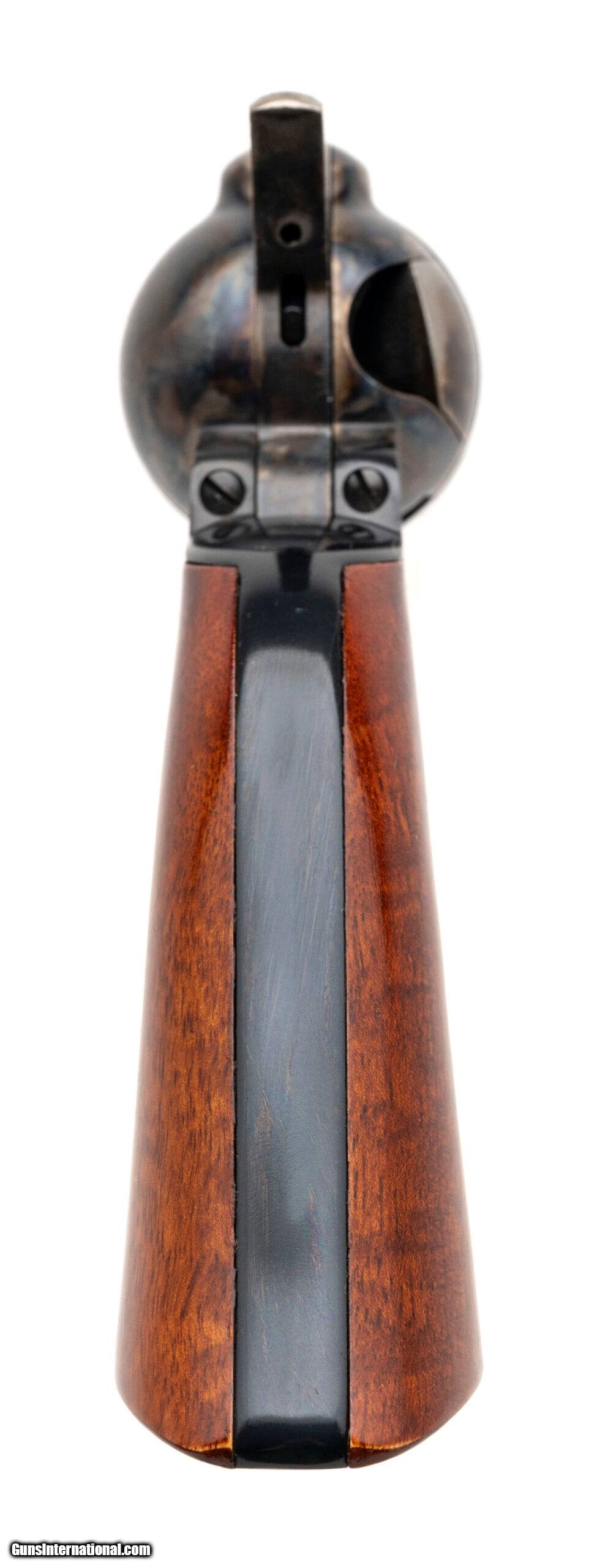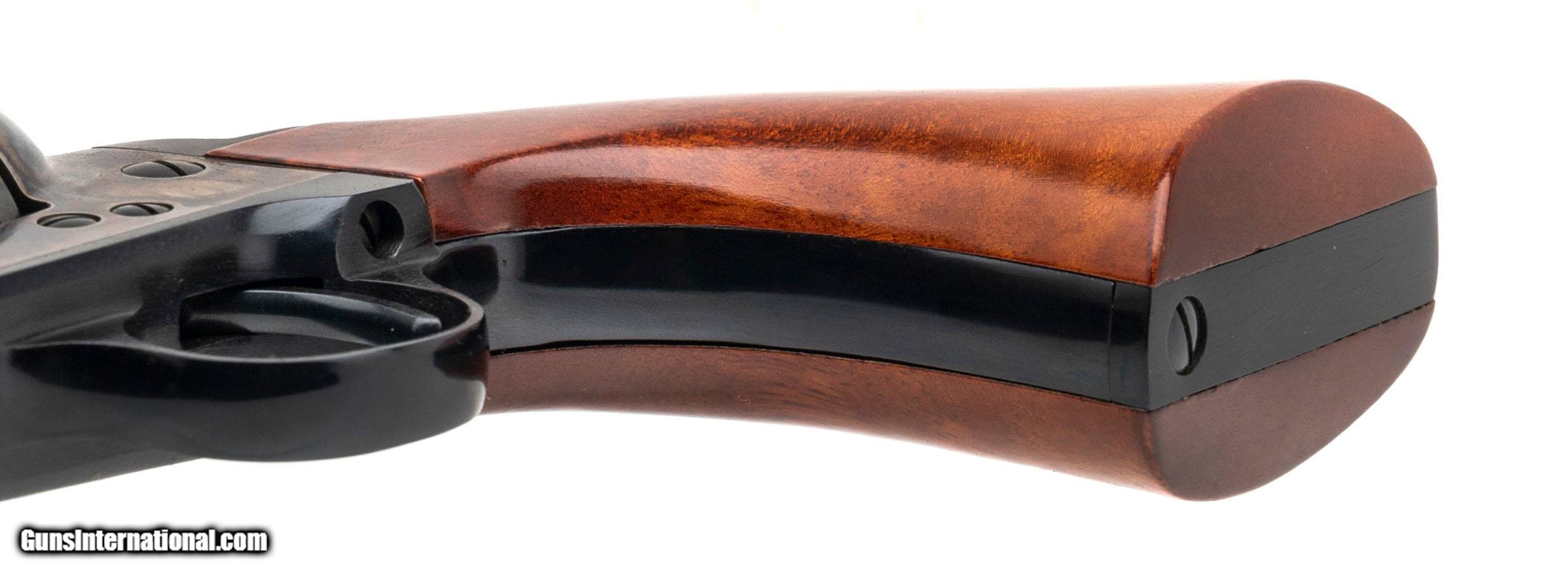 Description: "SN: U88898. Modern production, .45 Colt with a 5.5"" barrel. Bore is excellent. Single-action only revolver with a bladed front sight, blue finished barrel, color case hardened frame, and wood grips. Finish shows light handling wear. Includes original box. Overall condition is near excellent. Price: $625.00 Contact Seller |