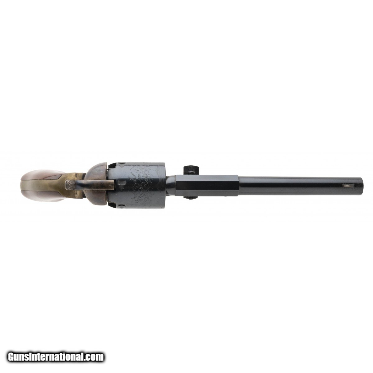 SN:A98756 Modern production .44 cal with a 7.5"" barrel. Bore is excellent. Dragoon replica with engraved cylinder, Case colors on recvier and wood grips. Overall condition is excellent