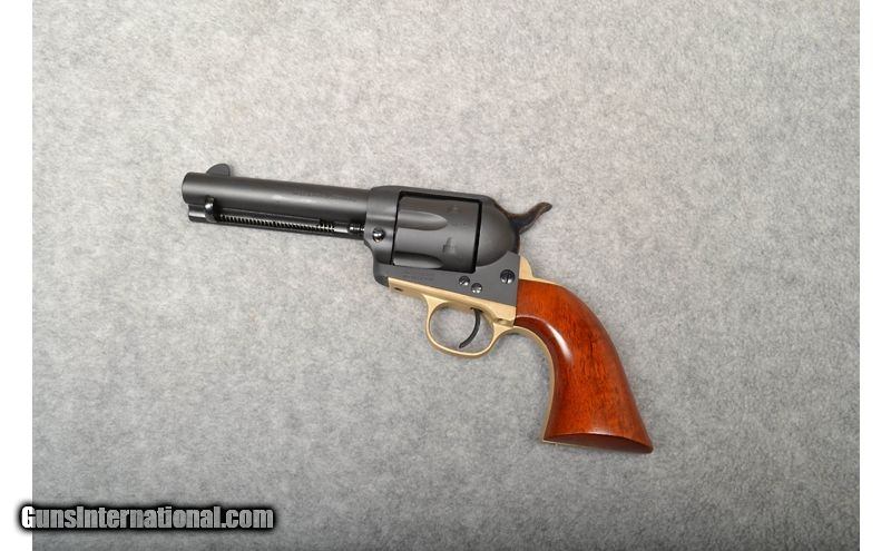 Description: The Uberti 1873 Single-Action Revolver is reminiscent of the revolvers used in the last decades of the 19th Century West. Like the old six-guns, the 1873 is ruggedly built and points naturally. The barrel, ejector rod housing, and cylinder are blued steel. Smooth finished wood grips provide a comfortable hold. The 1873 Single-Action Revolver utilizes a rugged, fixed groove rear sight that can't possibly get knocked out of alignment and a simple blade front sight that draws smoothly from holsters. .357 Mag SOLD Chambers: .357 Mag Metal Condition: "Great, very little to no scratches Wood Condition: "Excellent, no scratches or nicks Bore Condition: "Excellent, bright and clear rifling Barrels: 4 3/4 Triggers: SA Butt Pad: Wooden Grips Weight: 2 lbs 10 oz Sights: Iron Sights Item Location: Columbus, OH |