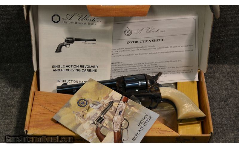 Description: Manufactured to exacting specifications and using the most modern of production methods, A. Uberti has successfully maintained a reputation as a world leader in firearm replicas. This model 1873 is an example of their work. Featuring pearlescent grips as well as color case hardened frame and hammer, a great looking modern version of Colt's Single-action Army. .45 Colt SOLD Chambers: 6 Metal Condition: Excellent Bore Condition: Excellent Barrels: 5.5 Triggers: Single Action Weight: 2.5 lbs Sights: Bladed Front; Integral Rear Item Location: Thornton, CO |