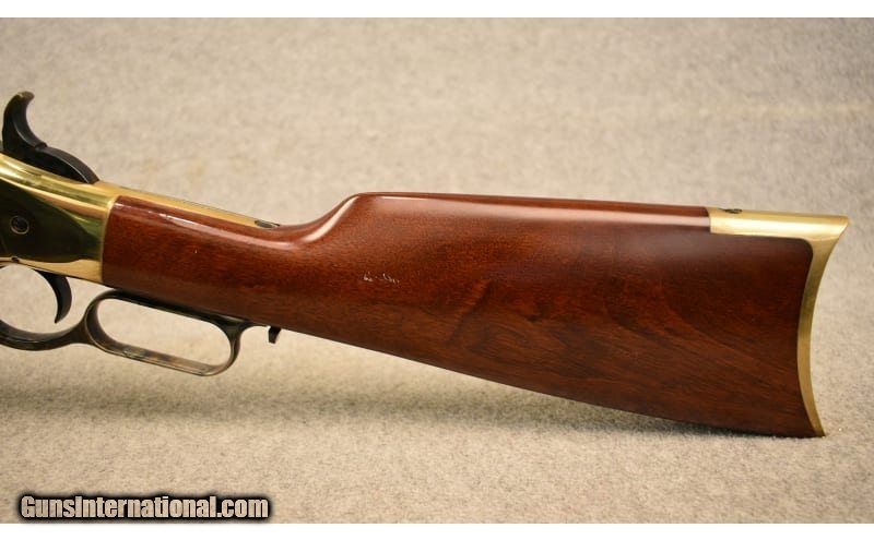 Description: This A. Uberti Model 66 Sporting .45 colt is in outstanding condition. The metal does not have a scratch or mark on it. Fore end has maybe fifteen to twenty small indentations and stock has multiple small scratches on the bottom and maybe fifteen small indentations. Very nice looking gun at a good price. .45 Colt SOLD Chambers: .45 with 10 round magazine Metal Condition: Very Good Wood Condition: Very good Bore Condition: Very Good Barrels: 24 1/2" octagon Fore End: Wood Butt Pad: Metal Weight: 8 Sights: Adjustable Rear Item Location: Kansas City, KS |
