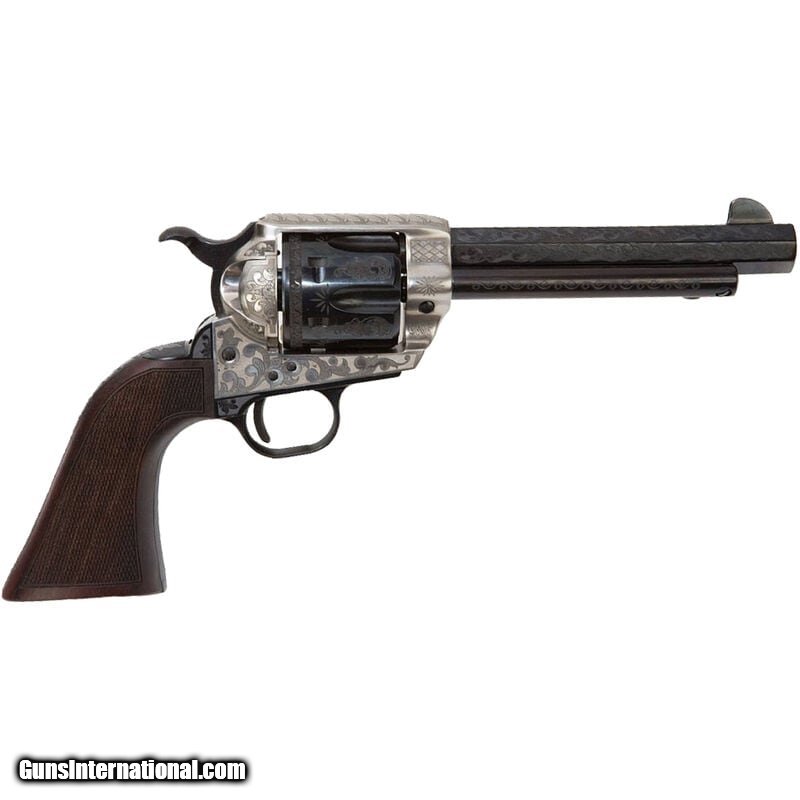 Description: Guns Listing ID: 1114563 This is a traditional 1873 mated with a longer, thinner 1860 Army style grip. It sports an octagon barrel, and aged, old looking silver colored frame, with finely checkered walnut grips and detailed laser engraving throughout. This pistol is ready for the cowboy action circuit or period re-enactor with a wide, set-back competition trigger, a lower wider hammer, and fixed sights. This smoke wagon doesn‚‚t just look good, it‚‚s a fine shooter as well. - CALIBER .45 COLT - LONG COLT - GRIPS 1860 Army Checkered Walnut Grips - BARREL 5.5\" Octagon - FINISH Laser Engraved Aged Silver Fra SOLD Manufacturer: EMF Model: .F. GWII Deluxe Alchimista III 1873 .45 LC Caliber Info: .45 LC Condition: new Barrels: 5.5 BARREL Finish: WOOD AND METAL ENGRAVING |