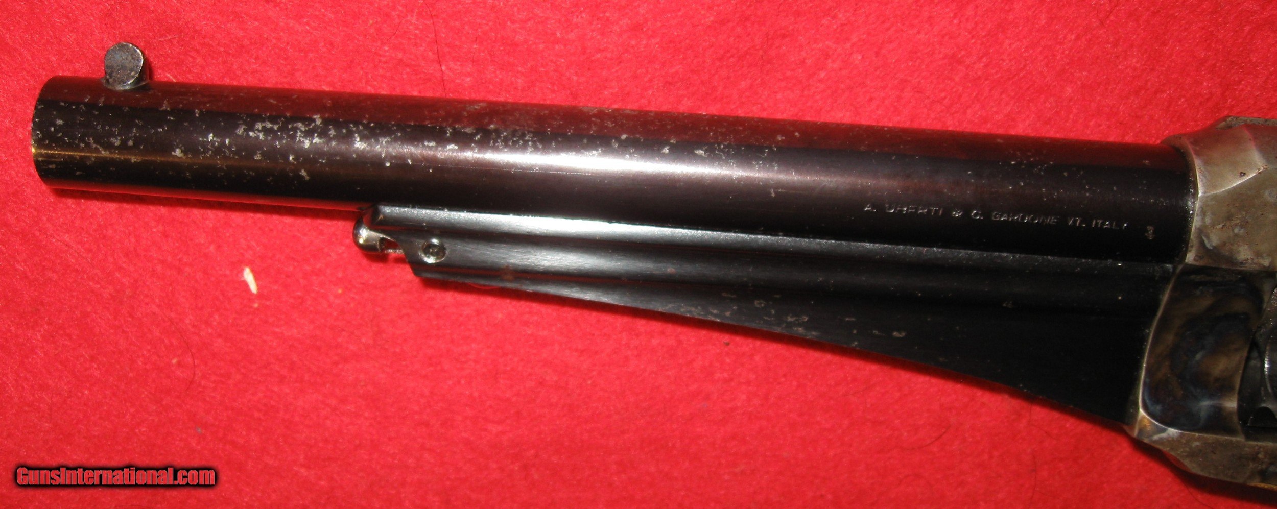 Description: sale pending katelyne s-THIS MARIETTA REPLICA ARMS 1875 REMINGTON REPLICA WAS MANUFACTURED BY UBERTI. IT IS AN EARLY MODEL SERIAL NUMBER 00245. IT IS CHAMBERED FOR 45 COLT. THESE EARLY MODELS HAD A CYLINDER PIN RETAING SET SCREW MADE BEFORE THE SIDE TO SIDE PUSH PIN CYLINDER PIN LATCH. THIS ONE IS IN EXCELLENT MECHANICAL CONDITION, VERY LIGHTLY USED WITH AN EXCELLENT BORE. THE FINISH HAS HAD ABOUT 50% LIGHT SAFE QUEEN RUST THAT HAS BEEN CLEANED UP. THERE IS LOTS OF SPOTS ON THE FINISH (SEE PICTURES). THE COLOR CASE AND BLUE ARE IN VERY GOOD CONDITION WHERE THE RUST DIDN'T GET AT THEM. WILL BE A GREAT SHOOTER AND IT COMES WITH THE ORIGINAL BOX AND PAPERWORK. SHIPPING IS $35 MY FFL TO YOUR FFL SOLD Manufacturer: UBERTI FOR MARIETTA REPLICA ARMS Model: 1875 REMINGTON Serial Number: 00245 Caliber Info: 45 LONG COLT Chambers: 6 Condition: VERY GOOD Metal Condition: EXCELLENT MECHANICS - FINISH DAMAGE Wood Condition: EXCELLENT Bore Condition: EXCELLENT Barrel Type: 7 1/2" ROUND Action: SINGLE Finish: BLUE / COLOR CASE - RUST SPOTTING DAMAGE Sights: OPEN |