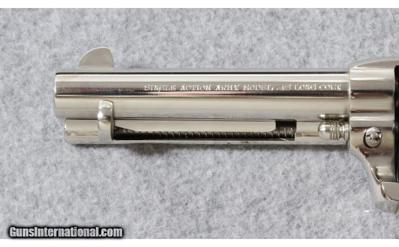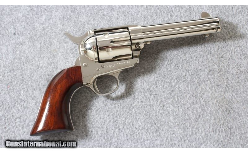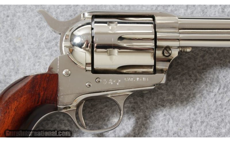 Description: The Mitchell Arms 1873 Cattleman Single Action Revolver, manufactured by Uberti, is reminiscent of the revolvers used in the last decades of the 19th Century West. Like the old six-guns, the Cattleman is ruggedly built and points naturally and it has the added advantage of an enhance safety that the old guns didn't have. The 1873 Cattleman Single-Action Revolver utilizes a rugged, fixed groove rear sight that can't possibly get knocked out of alignment and a simple blade front sight that draws smoothly from holsters. The wood grips are pleasing to the eye and provide a comfortable hold. .45 Colt SOLD Metal Condition: Excellent with a turn line and burn marks on the cylinder Bore Condition: Excellent with signs of use Barrels: 4 3/4 inch barrel Triggers: Single action Weight: 38 oz. Sights: Square notch rear with blade front Item Location: Lehi, UT |