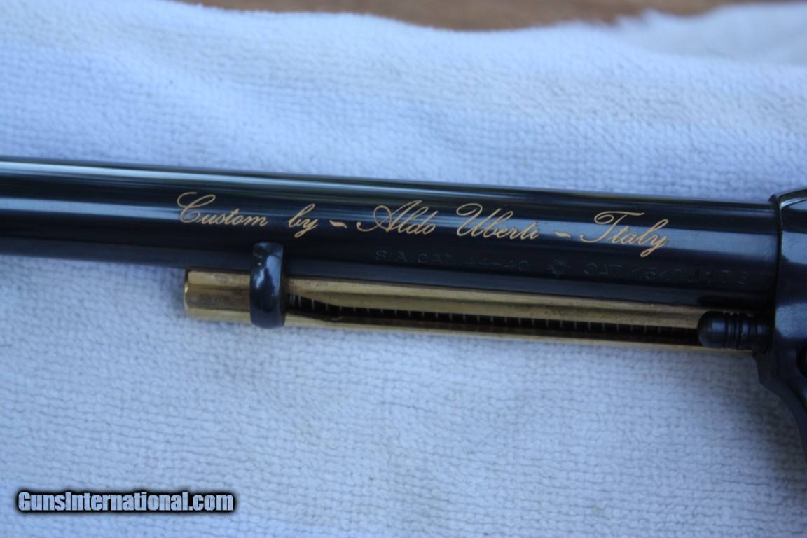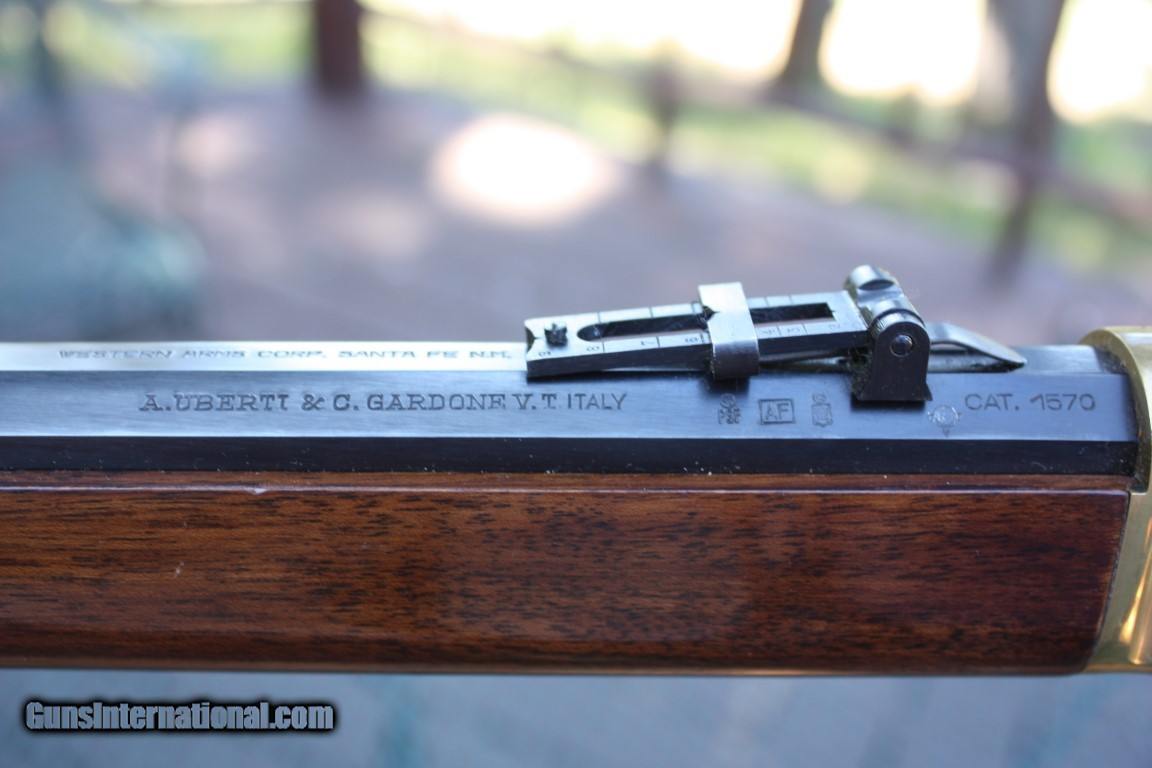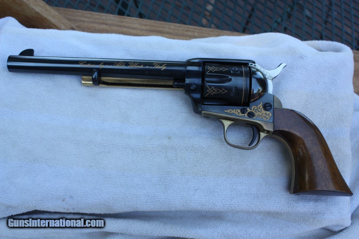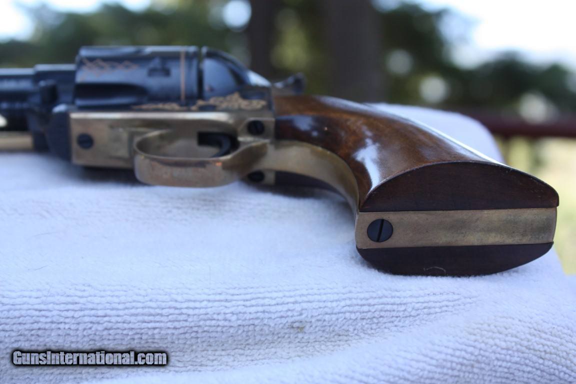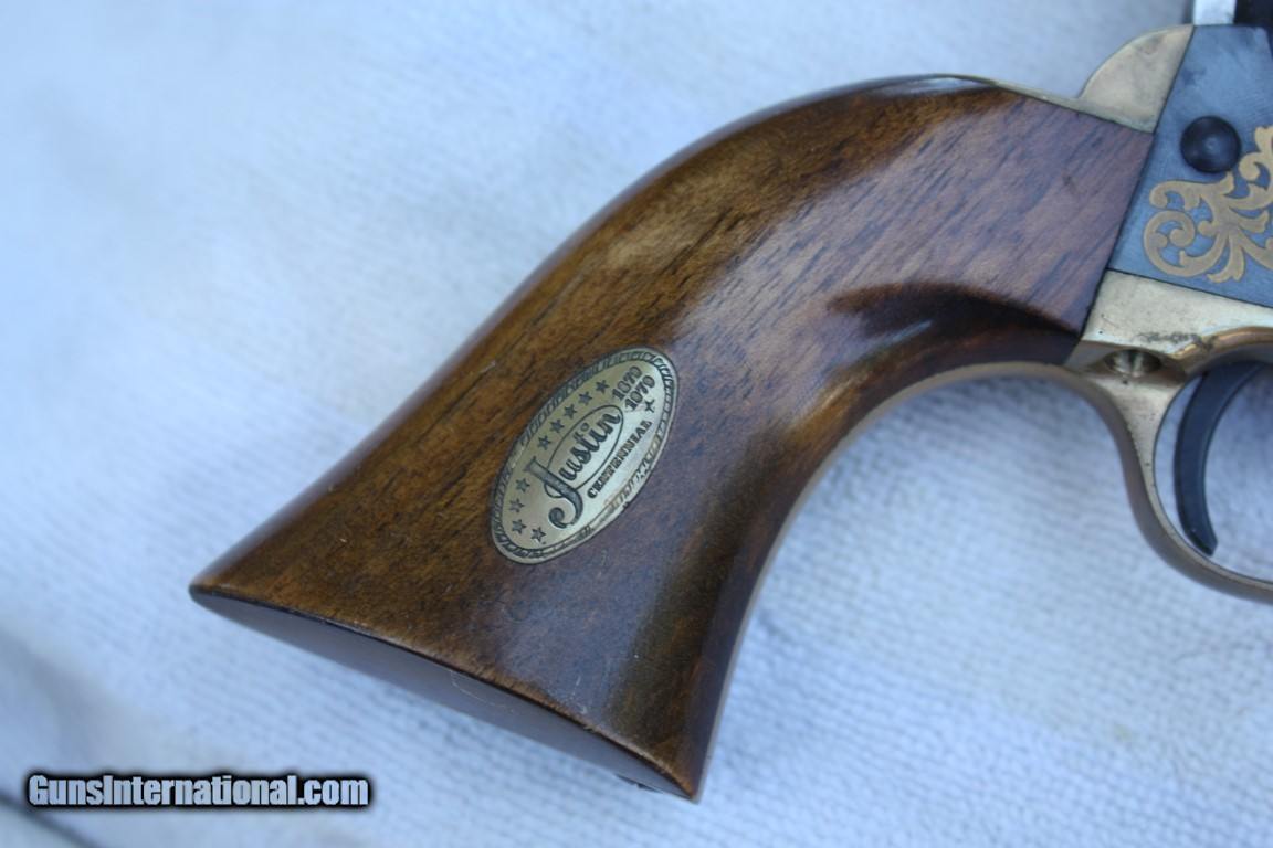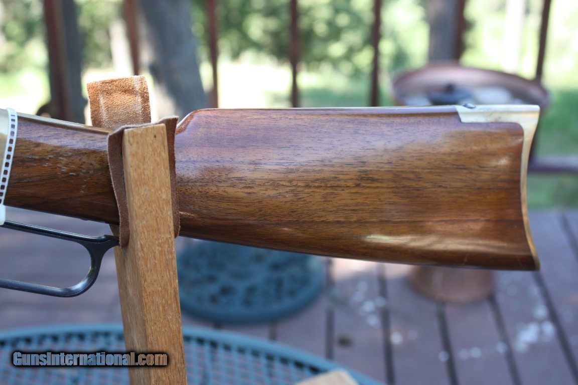 Description: Model 66 Winchester and SA Colt Centennials 44-40 Specially Engraved for Justin Boot Co 1879-1979 Commeratives Manufatured by Uberti Rifle: Engraved brass action with matching 7 1/2" Colt pistol Brass oval on stock Reproduction of Winchester 1866 44-40 caliber Rifle appraised at $2200.00 Pistol: Engraved to match rifle Also 44-40 caliber Pistol appraised at $1000.00 Totall appraisal $3200.00 Comes with letter of authenticy that states only 700 sets made. Can email separately if want copy. Questions 406-754-2512 We offer totally free, no interest, no fees payment plans of your choice SOLD |