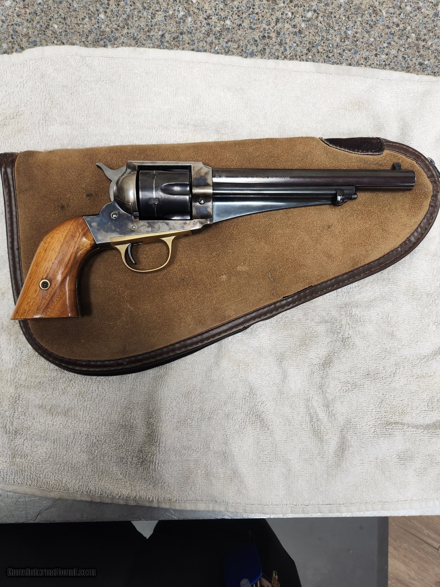 Description: Guns Listing ID: 490545 Attention Red Dead Redemption fans this Navy Arms 1875 Army reproduction is a perfect fit for your collection. Firearm comes as is with a pistol soft case. Cylinder shows sign of firing, barrel has slight wear on the front of the barrel. SOLD Manufacturer: NAVY ARMS Model: 1875 Army Caliber Info: .44-40 WIN Condition: Used - Non-Certified Barrels: 7.5 BARREL Finish: blk |