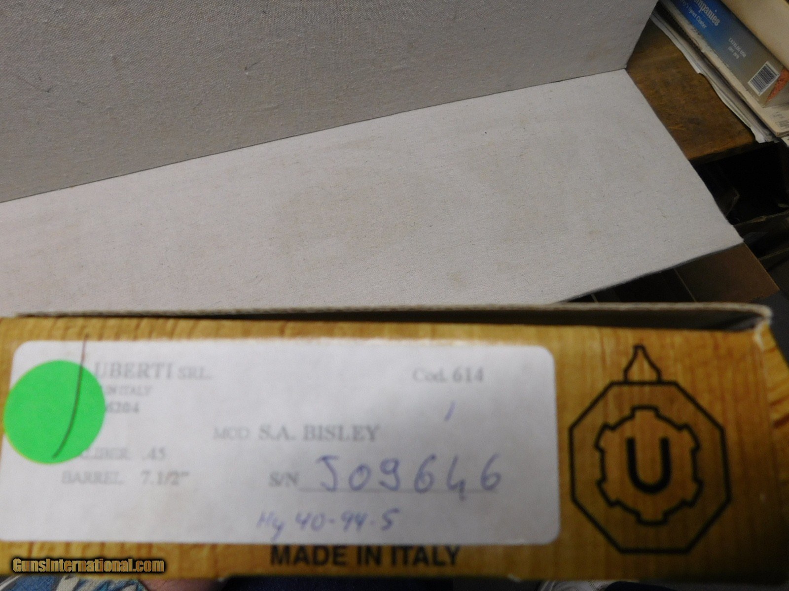 Description: Navy Arms\Uberti, Colt SAA Bisley,45LC,7-1\2" Barrel,Blue with CC Frame, New Unfired in Box!!' Store hours Thurs-Fri-10AM-8PM Sat-9AM-12PM All Other times please leave a message,Thank You! No California Sales Lower 48 State Sales only Pa. Residents 6% Sales Tax applicable Shipping $ 35.00 SOLD Manufacturer: Uberti Model: SAA Bisley Serial Number: J09646 Barrel Length: 7-1\2 |