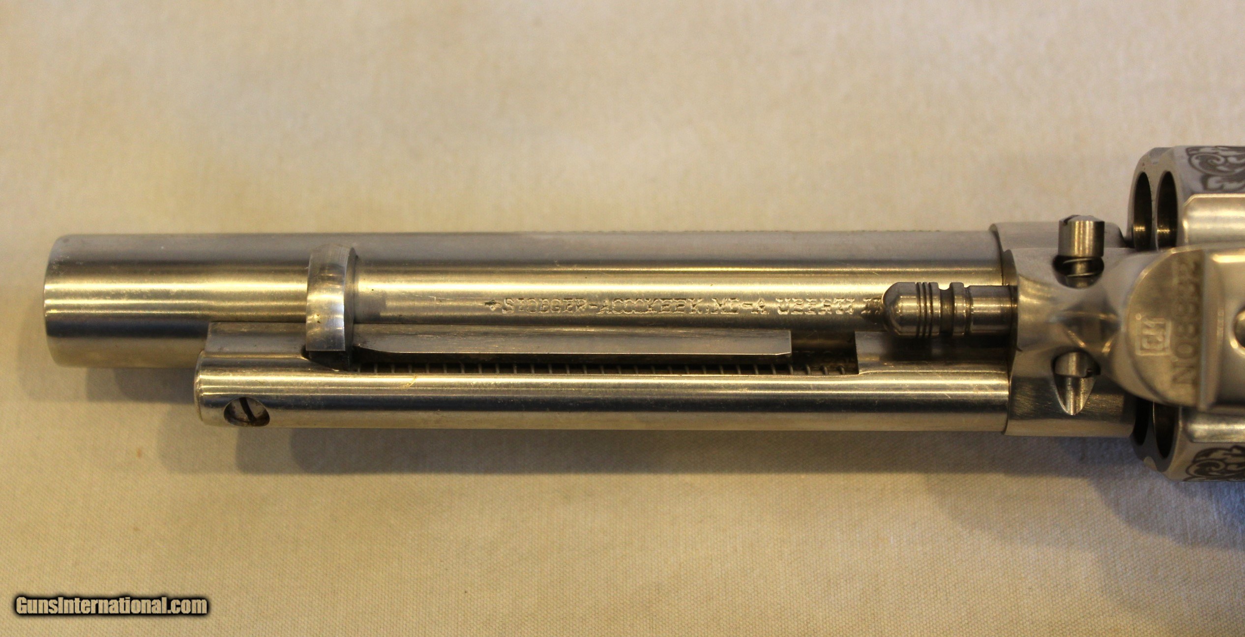 Description: Never fired Uberti 1873 Cattleman El Patron Belleza Limited Edition Revolver 345090, 45 Colt, 5.5″, Walnut Grip, Stainless Finish Designed by Major General George Schofield, the Smith and Wesson Model 1870 “Schofield” was a revolutionary design that broke open, ejecting all six spent cartridge cases automatically while providing easy access for re-loading. Fast re-loading being a distinct advantage in his line of work, Jessie James bought a pair as did John Wessley Hardin and Wild Bill Hickok. Although the U.S. Army purchased 3,000 S&W Schofields with an improved top latch for cavalry troops, it was the Russian government that really embraced the new sidearm. With a slightly modified grip, lanyard ring and distinctive trigger-guard spur, the Czar ordered over 41,000 of the new S&W revolvers. True to the originals, Uberti Top Breaks come in all three models including the Russian model with authentic Cyrillic barrel stampings. SPECIFICATIONS: Caliber: .44/.40 Barrel Length: 5.5″ Total Length: 10.8″ (bbl 5″)” Weight: 2.4 lbs.(bbl 5″) Cylinder: 6-shot, fluted Grip: Two-piece walnut Finish: Frame – Blued Barrel – Blued Backstrap – Blued Trigger guard – Case-hardened Shipping included. California sales additional $25 for paperwork fee. Call RW Outdoors with any questions at 406-842-5271. SOLD Handgun Caliber: .44 Special Manufacturer: Uberti Model: 1873 Cattleman El Patron Belleza Serial Number: N08832 Barrel Length: 5.5 Condition: New in box Item Location: Sheridan, MT |