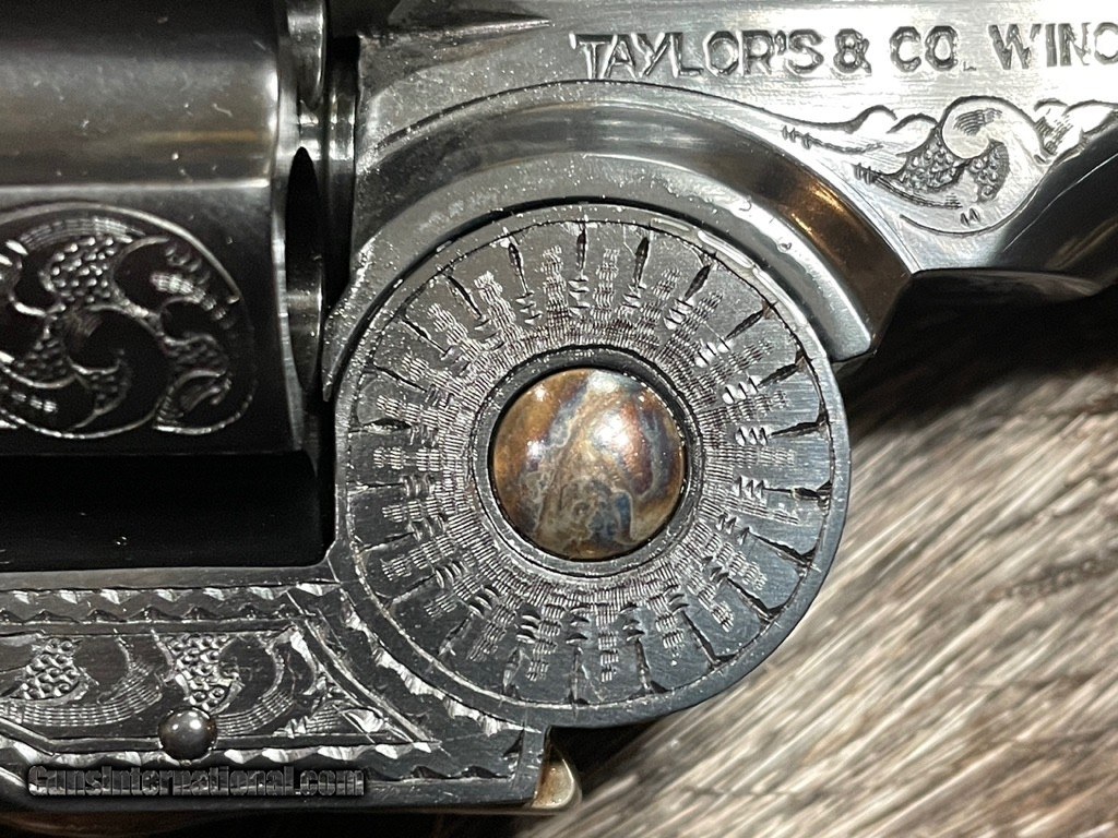 NEW HAND ENGRAVED UBERTI 1877 SCHOFIELD DELUXE 44-40 7" WOOD GRIPS TAYLORS 550652 - LAYAWAY AVAILABLE